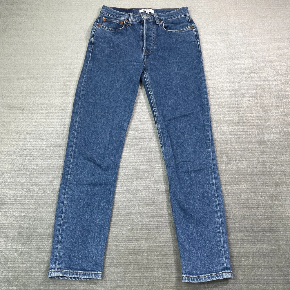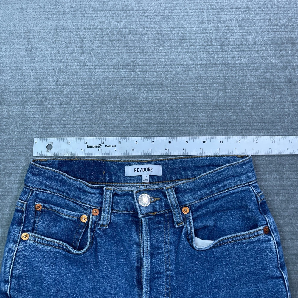 Redone Jeans Women 2 Blue High Rise 90S Ankle Crop Button Fly Western Rinse Overall good used condition. No Flaws. Stretch? Yes