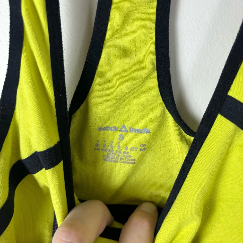 Yellow reebok crossfit sports bra, womens size S. Its in great condition, no holes or stains It's been washed before listing Please reference photos before listing