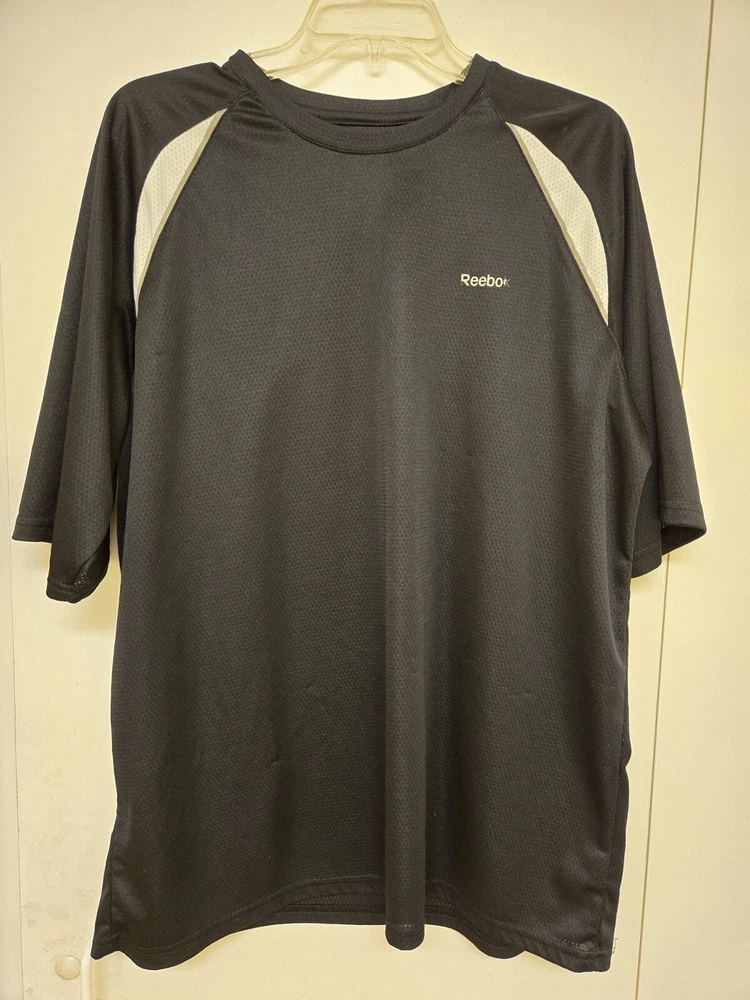 Elevate your golf game with this Reebok Play Dry Golf Tech Textured Wicking activewear top. Designed for men who love to stay active, these tops are perfect for your golfing needs. The black color with white accents provides a stylish look that will surely make heads turn on the golf course. Made by Reebok, a trusted brand in the world of activewear, these tops are guaranteed to provide the comfort and performance you need. The Play Dry technology ensures that you stay dry and comfortable throughout your game, while the textured design provides excellent grip and control. Perfect for any occasion, these Reebok Play Dry Golf Tech Textured Wicking activewear tops are a must-have for any golf enthusiast. Some of the letters from Reebok are coming off. Washed per eBay standards.