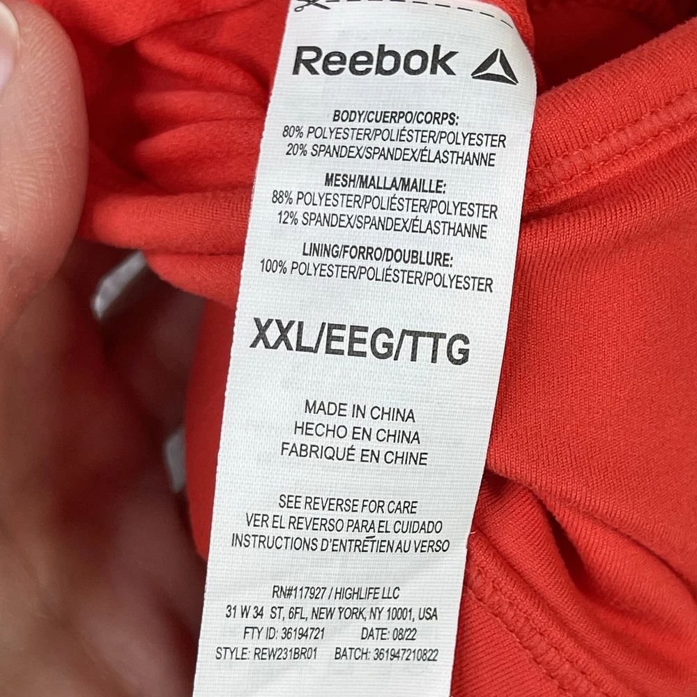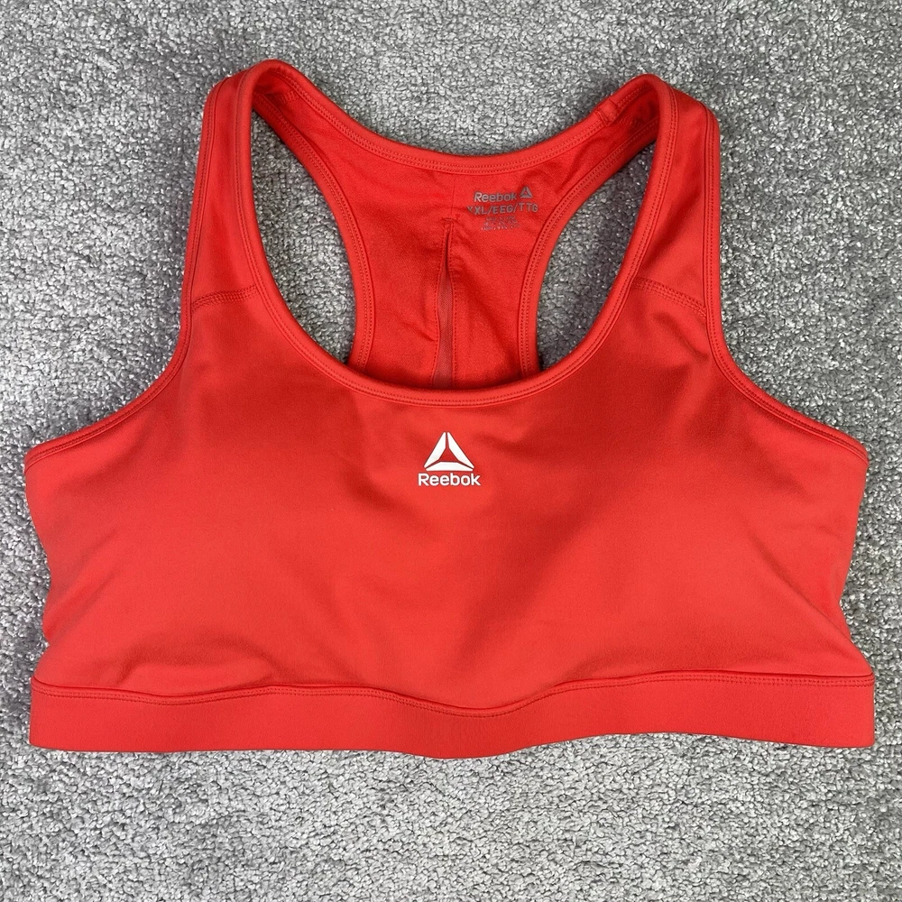 Style: Sports Bra Closure: Pullover Support Level: Medium Pattern: Solid Personalize: No Size Type: Regular Performance/Activity: Yoga, Any Performance/Activity, Athleisure, Walking, Running & Jogging Accents: Logo Country/Region of Manufacture: China Size: XXL Underwire Type: Wireless Brand: Reebok Fabric Type: Blended Fabric Material: Polyester, Spandex Department: Women Color: Red Theme: Sports, Classic Features: Padded Strap Type: Racerback Occasion: Activewear Cup Coverage: Full Band Size: 2XL Type: Bra Cup Size: One Size