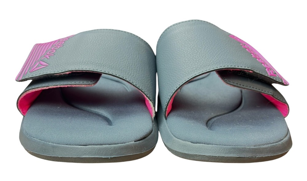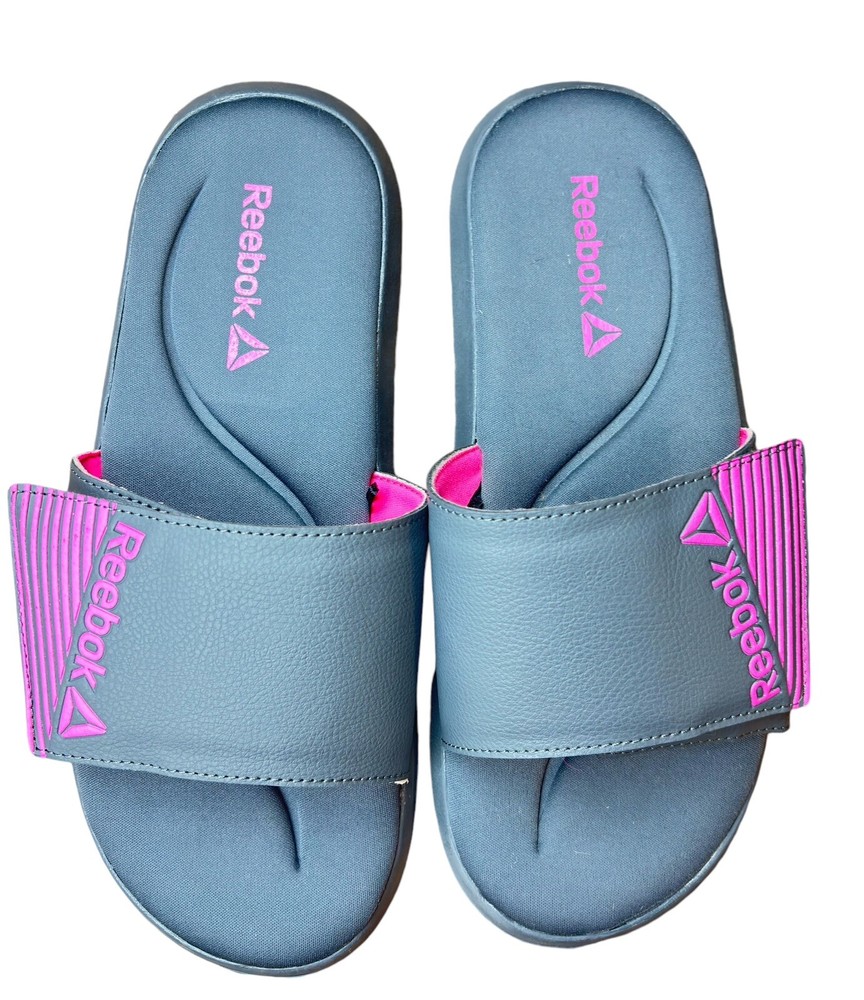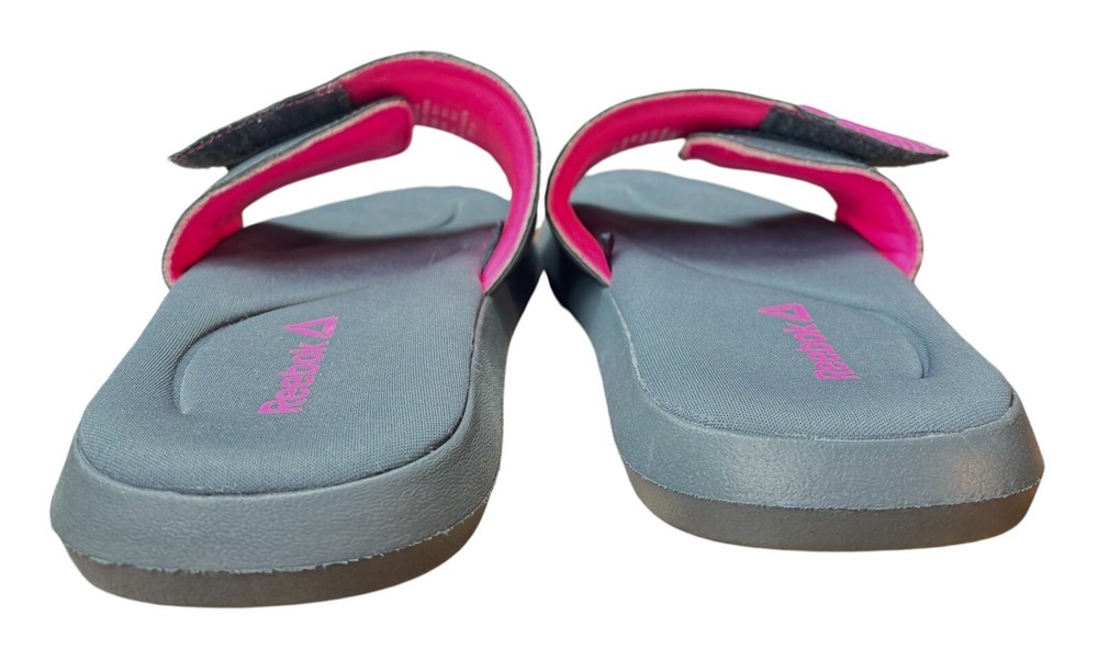 Elevate your comfort and style with these Reebok Memory Foam slide sandals. Perfect for women who appreciate both fashion and function, these sandals feature an adjustable design that ensures a secure fit. The synthetic upper material is durable and long-lasting, while the gray and pink color combination adds a pop of color to any outfit. These sandals are perfect for any occasion, whether you're running errands or hitting the beach. With a size 10 fit, these sandals are designed for women who want to make a statement with their footwear. Get your hands on these Reebok Memory Foam slide sandals today and step up your shoe game! EUC