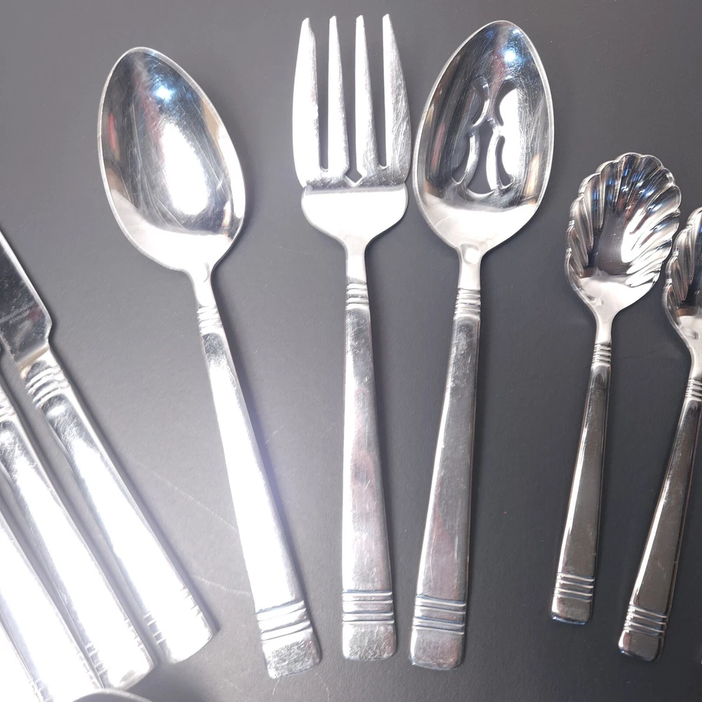 Set Of 27 4 place settings Serving set, butter pat knives All seen in photos! See photos for description and condition and pieces