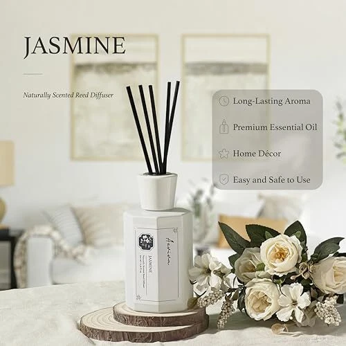Return Policy Fast Delivery Trusted seller Reed Diffuser Set, 6.76 fl oz Jasmine Scent Oil Diffuser, Home Fragrance with Reed Sticks for Bedroom, Office, Bathroom Shelf Decor & Gifts Product Description Sweet Jasmine Scent: fills the air with a sweet and floral aroma, creating an uplifting and enchanting ambiance Reed Diffuser Set Includes: 1 glass bottle containing 200 ml / 6.76 fl oz natural plant essential oil; 5 oil diffuser sticks (Aroma amount can be adjusted by the number of sticks inserted) Long-lasting Aroma: the reed sticks will dispense the fragrance for 90 to 120 days (Room size, temperature, and moisture may affect the lifespan of the diffuser) See and Smell: reed diffuser are more than just home fragrances, the well-crafted design makes them the perfect addition to the office, an unique bathroom shelf decor, and pleg guest room essentials Gifts for All: treat yourself and your loved ones with this high-quality reed diffuser. An ideal gift for holidays, birthdays, welcoming parties or any gift-giving occasions; gift for men and women, for family and friends Shipping Returns Payment Shipping Shipping is FREE to all addresses other than APO/PO boxes in the lower 48 states. All our stock ships from US-based warehouses. Shipped via USPS or UPS (depending on location and package weight) Unless stated otherwise, all orders will ship within 24-72 hours of your payment being processed. Check our feedback to see the great reviews of FAST shipping we offer. Returns Seller does not accept returns Payment We currently accept payment via eBay managed payments only. Once payment is cleared, we will dispatch your shipment within 1-3 business days. Please refer to the "Shipping" tab for more information regarding shipping speed to your destination.