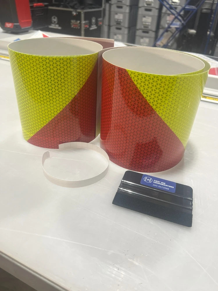 Oralite V98 Conformable Two-Piece Chevron Panel Kit – Lime and Red – High Tack 15-inch x 67-inch Key Features High-Tack Adhesive → Ease of application; stays in place Superior Conformability → Perfect for complex curves, rivets, and corrugations Prismatic Retroreflective Performance → Enhanced long-distance visibility Mono-layered Construction → No edge sealing required; resists edge lift and high-pressure washing Exceptional Impact Resistance → Maintains reflectivity after impact When installed side-by-side, these two pieces create a 67″ long horizontal chevron panel in high-visibility lime and red. Oralite V98 High-Tack material is easy to trim with scissors or a precision cutting knife. This Chevron Panel Kit includes: Oralite V98 Two-Piece Chevron Panel Kit – Lime and Red – High Tack 15-inch x 67-inch 33.5″ of left-slant material 33.5″ of right-slant material Free squeegee included: Each kit comes with a free squeegee to help you achieve a smooth, bubble-free installation. Seam sealing tape: A clear piece of Oralite seam sealing tape is provided for a more finished look. **This vinyl product may require cutting and trimming for proper fitment. We recommend using a precision knife or knifeless tape to assist with the installation process. ORALITE V98 Conformable Pre-Striped Chevron is a pre-striped, fluorescent lime and red chevron pattern reflective vinyl eliminating the need for piecing sheeting. The sheeting is designed for vehicles that require increased visibility such as fire, EMS, police, utility, telecom and DOT. The material is easy to apply to smooth painted or unpainted vehicle surfaces. The single layer product does not require edge sealing and is designed to be applicator friendly. The sheeting meets and exceeds the requirements of NFPA 1901.