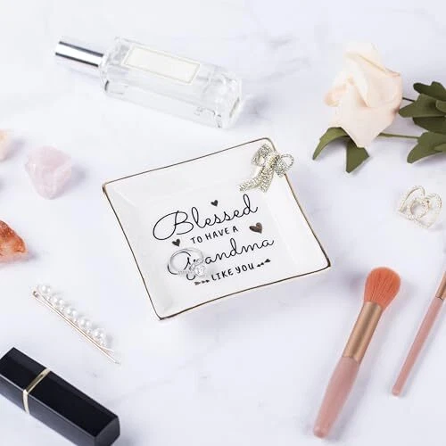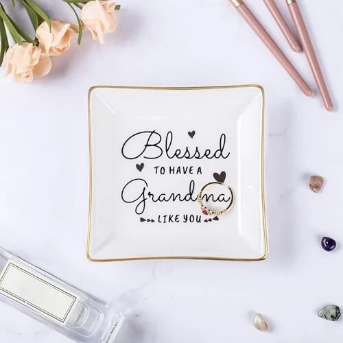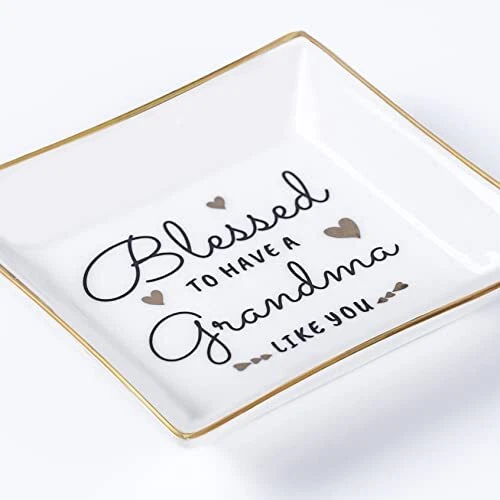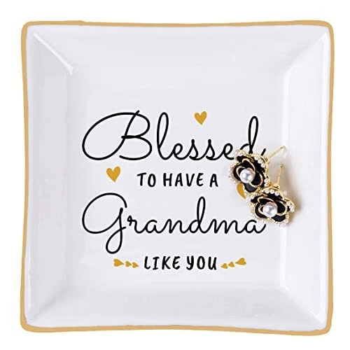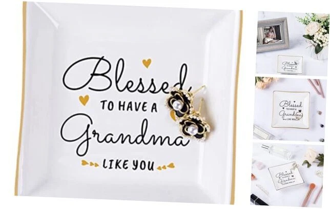 Menu 1. We require immediate payment. 2. We currently accept payment via eBay managed payments only. 3. Once payment is cleared, we will dispatch your shipment within 1-3 business days. Please refer to the "Shipping" tab for more information regarding shipping speed to your destination. Grandma Birthday Gifts from Granddaughter Grandson, Gift for Grandma Jewelry Ring Dish Blessed to have a grandma like you, Mother's Day Christmas Valentines Day Gifts for Grandma Nana Product description Great Grandma Gifts: Best gifts for grandma, the pretty jewelry dish with heartwarming sayings "Blessed to have a grandma like you" Thoughtful sentimental grandma gifts from grandchildren, granddaughter, grandson. This ring dish is specially designed for grandma to tell grandmother that blessed to have her and how much we love her and respect her Multifunctional Jewelry Dish: Leave the trinket dish on the dresser, sink, desk, or nightstand to place the rings, necklaces, bracelets, earrings, watch, and other jewelry pieces without worrying about losing them. Also can be a bathroom soap dish, a key dish bowl in the hallway. Perfect keepsake gifts for grandma, great for room decor. She will bring a bright smile to her face every time uses this jewelry dish. She will love it Gifts for Grandma from Grandchildren: This decorative ceramic jewelry plate is a perfect gift for your favorite grandma, grandmother, Gigi, Mimi, and nana. Especially presents for grandma's birthday gifts, nana gifts, Happy Mothers' day gifts for grandma, retirement gifts for grandma, Thanksgiving Day, Valentines' day gifts for grandma, Christmas gifts for grandmother, etc Material and Size: This Jewelry Dish Tray is exquisite and stylish, beautiful, and full of love and affection. Our ring dish is crafted from great quality glazed ceramic, with golden lines on the edges. Small size, Big love: 4.1"L x 4.1" W.(small trinkets are not included) Quality Guarantee: Heartwarming words are “baked-in”, not painted on, so the text is clear and firm and does not easy to fade for long-term use. Well packed with styrofoam and a white box. We are committed to providing customers with good quality and beautiful gifts PLEASE MESSAGE US IF YOU HAVE ANY OTHER QUESTIONS, AND MANY THANKS FOR READING ALL OF THIS. Copyright ©#. All Rights Reserved.