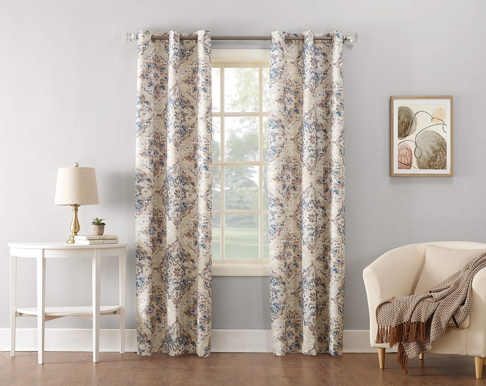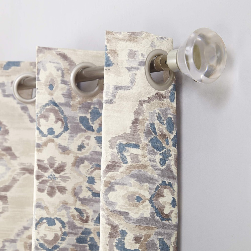 Noise reduction helps you get a sounder, more uninterrupted sleep Silver metal grommet top fits a standard curtain rod for easy hanging Floral watercolor design on a woven textured fabric with thermal insulated room darkening technology Thermal insulation helps you keep the summer heat and winter chill out of your home