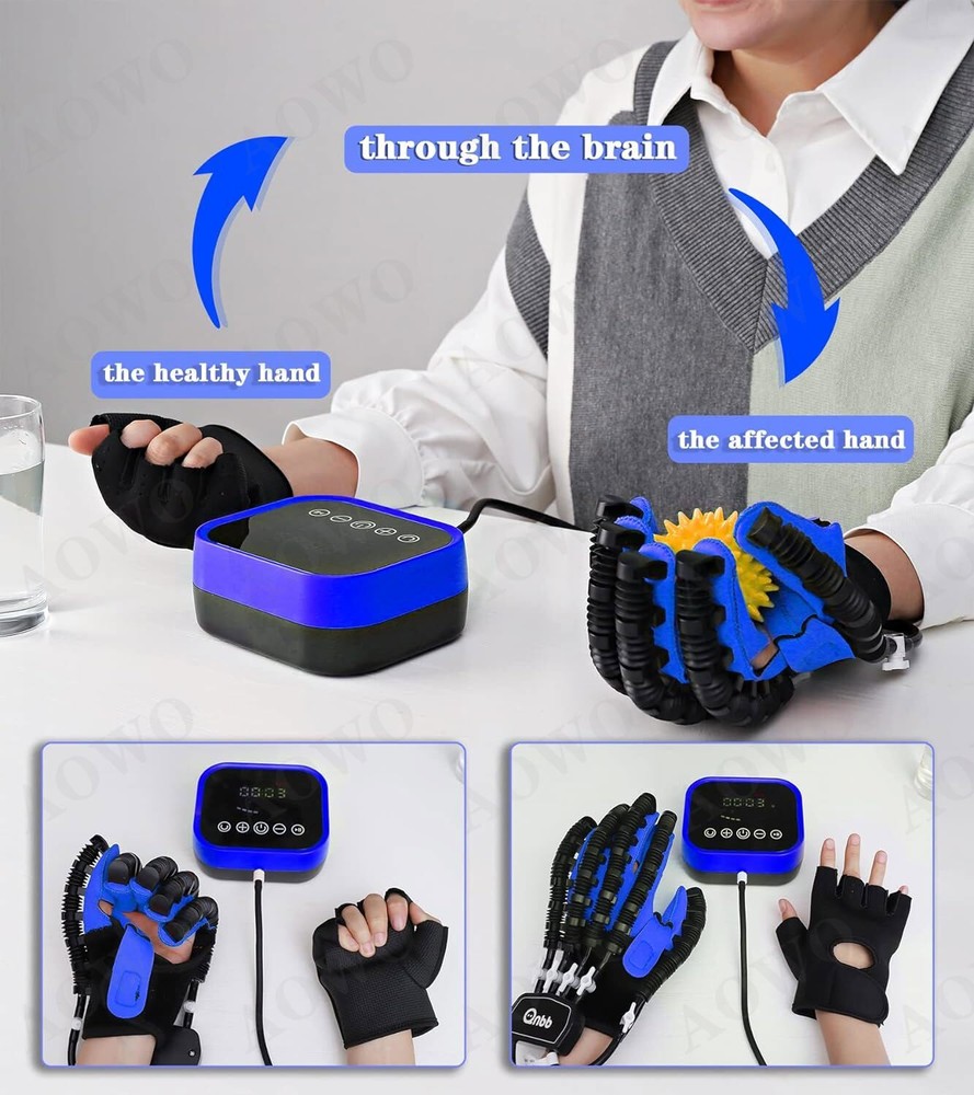 、 【Mirror Image Training】This Upgraded Rehabilitation Robot Gloves Use The Mirror Principle To Help Restore Movement In The Affected Hand. By Driving The Flexion and Extension Of The Healthy Hand, The Gloves Imitate The Movement Of The Affected Hand, Allowing for Continuous Imitation and Re-Learning. 【Easy To Use】Finger Rehabilitation Gloves Feature An Lcd Touch Screen Design and Come with English Instructions, Making It Easy for Patients To Efficiently Operate and Use Them. with Its Quick and Easy-To-Wear Design, Stroke Recovery Patients Can Independently Complete Their Daily Rehabilitation Training Plan and Directional Training, Including Flexion, Extension, and Grasping. 【Split Finger Training】This Rehabilitation Glove Allows You To Effectively Exercise Weak Or Spastic Fingers, As Well As Improve Finger Grasping Ability. with Its Innovative Rotary Switch, You Can Control The Flexion Movement Of Each Finger Individually for More Targeted and Effective Training. Don'T Let Finger Weakness Hold You Back, Use This Glove To Improve Your Hand Dexterity and Overall Rehabilitation Progress. 【Hand Grip Training】This Stroke Recovery Equipment Intelligently Imitates Hand Movements and Structure, Allowing for Independent Movement and Grasping. with Its Intelligent Hand-Grasping Simulation Technology, It Can Replicate Extension, Flexion, and Other Actions To Alleviate Hand Spasm, Stiffness, and Other Problems. 【Convenient To Store and Carry】This Hemiplegia Glove Weighs Only 500g and Can Be Easily Taken with You Wherever You Go. Once You Put On The Glove, The Hand Will Smoothly Follow The Flexion and Extension Of The Glove Under The Push Of The Air Pump. It'S Easy To Use for Activities Like Grasping Training Balls and Other Objects. Hand Function Exercise Rehabilitation Gloves LCD Liquid Crystal Touch Design Rehabilitation Robot Gloves It Adopts High-Definition Lcd Screen Display, And The Function Keys Are Designed With Touch Screen, Which Is More Convenient To Use. USB Charging USB Charging Port Design, Rehabilitation Robot Gloves The Built-In Large-Capacity Battery Can Be Used About 9 Times When Fully Charged, Rechargeable And Plug-In Dual-Use, Whether Indoors Or Outdoors, Train Your Hands Anytime, Anywhere. Choice Of Three Workout Modes Automatic Training Mode, Mirror Training Mode, Finger Training Mode, You Can Switch Freely During The Training Process. Packing List 1 X Rehabilitation Gloves 1 X Touch Screen Host 1 X Mirror Workout Gloves 1 X English Manual 1 X Training Ball 1 X Charger Easy To Wear And Use Robot Hand Rehabilitation Exercises That Can Be Done At Home Alone Include Flexion, Extension, Grasping, And More. Rehabilitation Robot Gloves Effectively Prevent Fingers From Curling And Keep Fingers Straight. Rehabilitation Gloves are Ergonomically Designed For Optimum Comfort And A Secure Fit To Keep The Hand Comfortable To Wear. Stroke Recovery Equipment for Hand The Operation Is Simple, And It Is Equipped With English Instructions To Assist Understanding, The Elderly Can Easily Operate And Use it. Rehabilitation Robot Gloves Product Recommended Size: We Support Customizing Other Sizes, The Size Specification In The Picture Is The Inch. Item Package Dimensions L x W x H 12.68 x 10.16 x 3.86 inches Package Weight 1.23 Kilograms Brand Name AOWO Color Blue Suggested Users Unisex Adult Manufacturer AOWO Style Wrap Size S,M,L,XL Rehabilitation Robot Gloves Finger Rehabilitation Trainer Robot Gloves For Stroke, Hemiplegia, And Finger Movement Disorders. It Is Very Effective For Finger Weakness, Cramps, And The Inability To Control Finger Grasping Movements. Stroke Recovery Equipment For Hand Helps You Solve Hand Troubles, Post-Operative Obstacles Sequelae, Finger Curling In The Elderly, Knuckle Movement Exercises, Relieve Hand Spasms, Finger Insensitivity, And Hand Dysfunction. On Feb 18, 2025 at 00:13:22 PST, seller added the following information: On Mar 6, 2025 at 00:52:50 PST, seller added the following information: On Mar 6, 2025 at 21:24:43 PST, seller added the following information: On May 2, 2025 at 20:02:45 PDT, seller added the following information: On Jul 15, 2025 at 23:36:26 PDT, seller added the following information: On Aug 21, 2025 at 01:28:43 PDT, seller added the following information: On Sep 12, 2025 at 01:06:04 PDT, seller added the following information: On Oct 13, 2025 at 03:57:49 PDT, seller added the following information: On Nov 10, 2025 at 03:17:39 PST, seller added the following information: On Dec 10, 2025 at 02:26:14 PST, seller added the following information:
