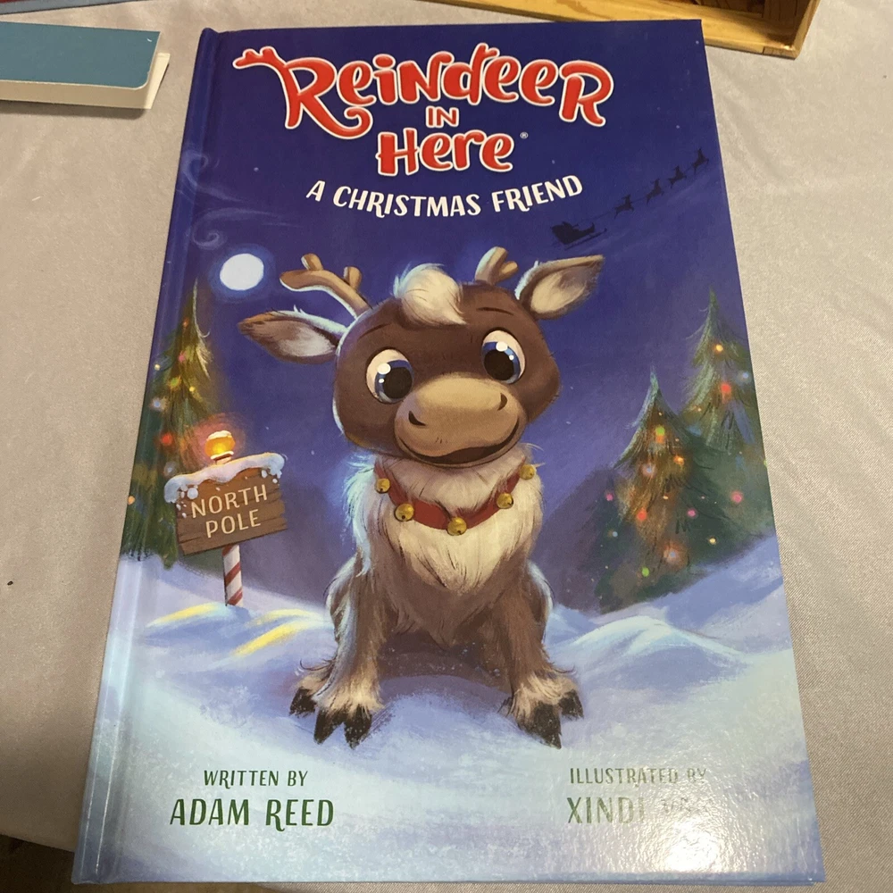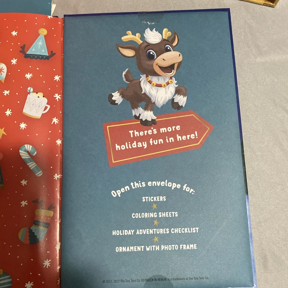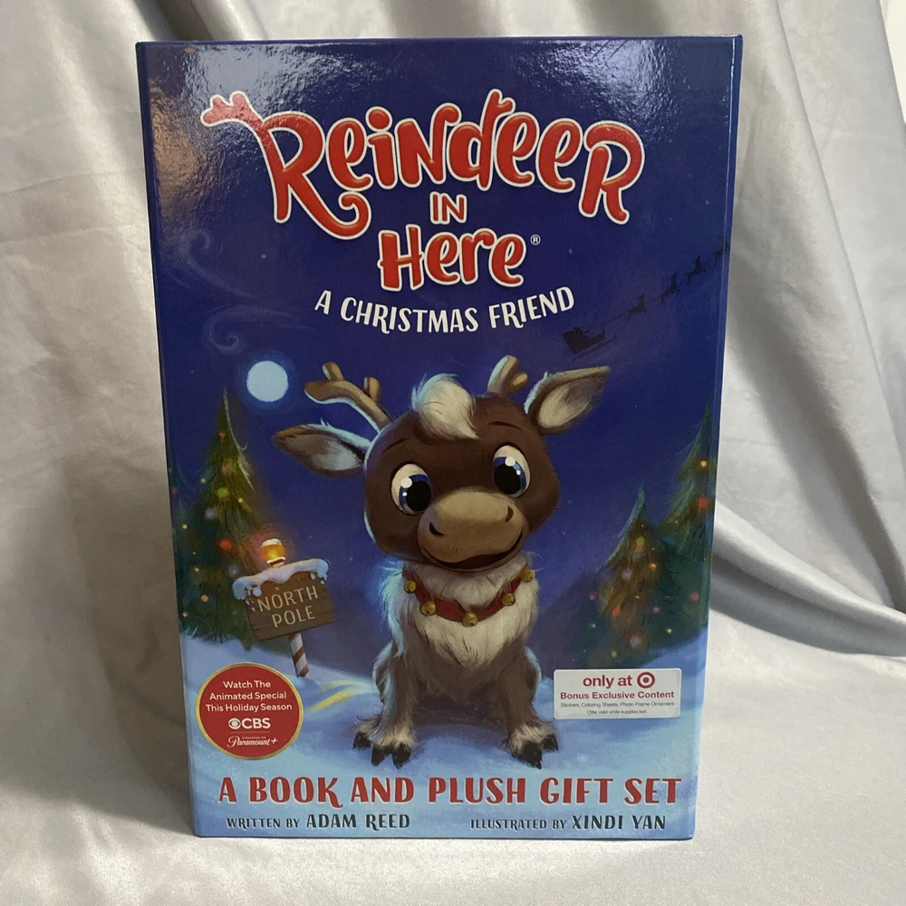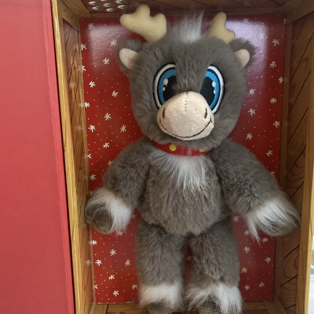 Bring the magic of Christmas into your home with this adorable Reindeer in Here A Christmas Friend figurine set. The set includes a soft plush toy and a hardcover book, both featuring the lovable reindeer characters. Perfect for collectors or as a gift for someone special, this set is sure to bring joy to anyone who loves holiday decor. The book and plush toy are designed with a book shape and feature a beautiful finish, making them a perfect addition to any collection. The set is ideal for Christmas occasions and is sure to be a hit with anyone who loves collecting holiday decor. Add this Reindeer in Here A Christmas Friend set to your collection today! Book holder detached from area due to glue. Great condition nothing used Reindeer still attached to box.