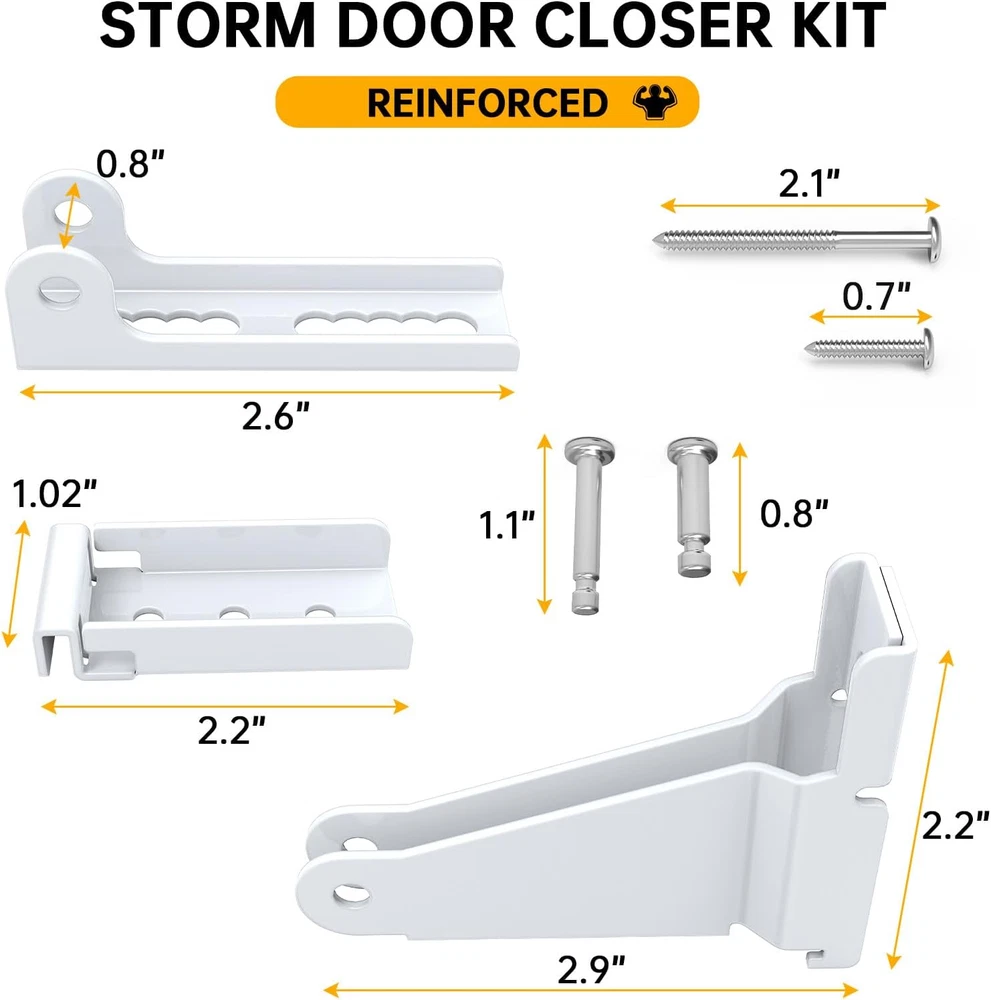 Store New Arrivals Add to Favorite View Feedback Contact Reinforced Storm Door Closer Bracket Kit Compatible with Andersen, Emco, Larson,Pella,40201 Door Repair Kit, Screen Door Closer Replacement Part for Storm Door, White Description Item model number TZS28 Part Number TZS28 Batteries Required? No Color White Product Dimensions 1 x 1 x 1 inches Material Metal Item Weight 0.12 Kilograms Installation Type Screw-In Manufacturer KOMOHOM Exterior Finish White Brand KOMOHOM Included Components 1 side pillar bracket, 1 side wall bracket, 1 adjustable door bracket, 2 short screws, 3 long screws, and 2 replacement pins Sturdy and durable buy with confidence: The Storm Door Closer Bracket is made of high-toughness and high-strength metal, which means you can say goodbye to frequent replacement Package Content: You will receive a set of replacement parts for storm doors, including 1 door frame bracket, 1 door frame bracket base, 1 adjustable door bracket, 2 short screws, 3 long screws and 2 replacement pins. Practical Design: This Storm Door Closer Kit is used for storm door jamb brackets that have been pulled out by wind or overextension. Replace the damaged parts yourself with this practical design. Easy to Install: The screen door closer replacement is easy to install. With a few simple tools, it takes less than 5 minutes to install. Save your time and energy. Compatibility: Our Screen Door Closer Bracket is designed to replace damaged door closer brackets compatible with Andersen, Emco and Larson. It protects doors from strong winds. Please note that our product is not sponsored or endorsed by, or affiliated with the brands it fits, including Andersen, Emco and Larson. Product description Reinforced Storm Door Closer Bracket Kit Compatible with Andersen, Emco, Larson,Pella After conducting research with thousands of consumer feedback, our designers found that the most common issue was due to the brittleness of the steel material resulting in breakage. Therefore, we have redesigned the bracket to be made of high-toughness and high-strength metal, eliminating the need for frequent replacements. ABOUT US We offer the best prices around on high quality products. Our E-store includes media such as books, movies, music and games while offering electronics, toys, sporting apparel, clothing, tools, general home, garden items and more. SHIPPING We are always working hard to ensure your package arrives as soon as possible. Please understand that some factors like weather, high postal traffic, and the performance of shipping companies are outside of our control. We offer free shipping to the lower 48 states and ship within 2 business days of payment, usually sooner. We do not accept P.O. Boxes. Please provide a physical address. RETURNS We offer a 30-Day Return Policy on items which you are not completely satisfied with. You have the option for a full-refund or an exchange of the item. No returns are available on items shipped outside of the USA. PAYMENT We accept PayPal. CONTACT US This page content is yet to come Please ad us to your favorite seller and visit again later Thank You CUSTOMER SATISFACTION We try our very best to make sure every customer is completely satisfied. If there's a problem, message us! We're happy to help.