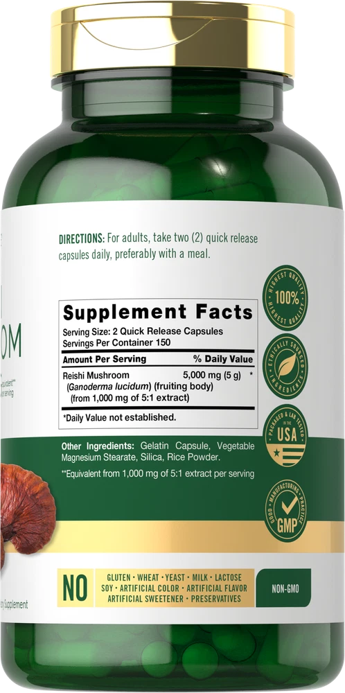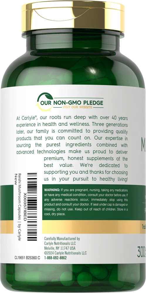 Reishi Mushroom Capsules 2500mg | 300 Count | Non-GMO | by Carlyle