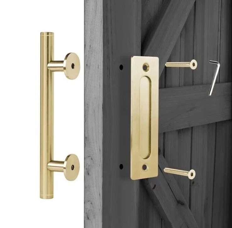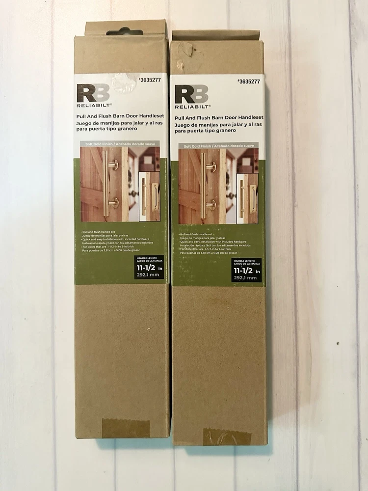 Same day business shipping. Will be professionally in new box! Thank you so much for your interest. If you have any questions, please feel free to ask. Elevate the functionality and aesthetics of your barn door with the Reliabilt Pull and Flush Barn Door Handle Set. Each handle set brings a touch of sophistication with its soft gold finish and sleek 11.5-inch height and length, ensuring a comfortable grip and easy operation. Crafted from durable metal, these handles are built to last, making them a perfect choice for your home improvement project. The package includes two handlesets, both featuring a satin finish that complements a variety of door styles and colors. Designed for ease of use and installation, these handles are suitable for any barn door setting, blending seamlessly with your home's unique charm. Add a refined touch to your door with this reliable and stylish hardware set.