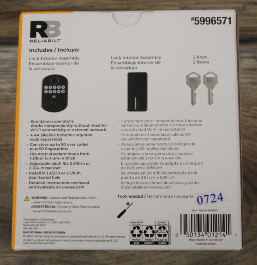 Up for sale is a NEW Reliabilt Fingerprint Deadbolt Door Lock Backlit Keypad Matte Black 2 Keys *** PLEASE NOTE ! Our store buys and sells a variety of used electronics, instruments, tools, antiques and many other items. We do our absolute best to thoroughly test all of our merchandise and accurately describe and depict any flaw or defect we find. If you come across an issue that we have overlooked, please contact us - we will be happy to work with you to resolve the issue. *** OFFICE HOURS Customer Service Hours: 9:00am - 5:00pm Monday – Friday (Closed major holidays) Have an issue with your item? Don’t worry, we’ll resolve it! Please don’t hesitate to send us a message if you have any concerns or issues with your order. We will respond as fast as possible during our business hours posted above. Note that our office is closed on Saturday and Sunday. RETURN POLICY We DO NOT accept returns. If there is a problem with your item please contact us and let us know what the problem is and we will work with you from there. We accept PayPal payments ONLY for shipped orders. If an item is paid for via PayPal, the item must be shipped. Items listed with LOCAL PICK-UP ONLY must be paid for in person upon pick-up with cash or credit at our physical store – there will be absolutely no exceptions. Ohio sales tax applies to Ohio residents. NON-PAYING BIDDERS : WE OPEN CASES IF WE DO NOT RECEIVE PAYMENT WITHIN 5 BUSINESS DAYS. We ship the majority of our items via UPS Ground, unless otherwise specified. PLEASE DO NOT PROVIDE A PO BOX ADDRESS unless we specify in the auction it will be shipped via USPS. Please provide a physical address for delivery. ALL packages with value over $250 will require signature for delivery. Item Location: C-4