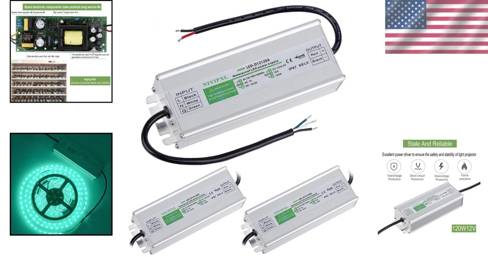 Reliable 120W Waterproof LED Driver - 3 Pack Low Voltage Power Supply for Lights ‹ › ‹ › ‹ › ‹ › ‹ › ‹ › ‹ › ‹ › ‹ › Reliable 120W Waterproof LED Driver - 3 Pack Overview: - Low Voltage Power Supply for Lights Transform your lighting experience with our Reliable 120W Waterproof LED Driver. This powerful driver is designed to meet the needs of various LED lighting applications while ensuring safety and durability. Specifications: Model: Input: 100-260V AC, 50/60HZ; Output: 12V DC, 10A, 120W. Protection Features: Automatic protection for short circuit, overload, over voltage, over current, and over temperature. Protection type: Hiccup mode allowing for auto-recovery after fault conditions are cleared. Wide Compatibility: Suitable for LED strip lights, LED light bulbs, computer projects, industrial, outdoor lights, and any 12V DC LED lights. Durable Design: 100% waterproof with an IP67 rating for outdoor use; aluminum metal housing for impressive heat dissipation and stability. Compatibility Note: The LED driver is NOT dimmable; compatible only with RGB dimmers. Certifications: IP67, CE, ROHS SELV etc. Why Choose Our LED Driver? Invest in a reliable, robust, and versatile power supply that shields your lighting solutions from undesired hazards. The 120W Waterproof LED Driver is engineered to deliver superior performance while providing essential protection against electrical faults. Perfect for outdoor applications, its IP67 rating ensures that your setup remains unharmed by the elements. Don't let your lighting projects go unsupported. Enhance your installations with an advanced power solution that guarantees functionality and safety. Order your 3-pack of Reliable 120W Waterproof LED Drivers today and elevate your lighting experience! Shipping Free & Fast Shipping - We offer free shipping to most of the USA with a normal delivery time of 3-7 days. However, due to the current situation, additional delivery time (up to 3 weeks) may be required for some items. Alternative Carriers - We may use alternative carriers (e.g. USPS, FedEx, UPS, etc.) to ensure your package arrives safely and on time. Due to the use of multiple carriers, we are unable to provide a tracking number automatically. Handling Time - Orders are processed and shipped within 1-2 business days of receiving cleared payment. Shipping Restrictions - Shipping to Alaska, Hawaii, Puerto Rico, Guam, and other US territories may incur shipping charges or delivery restrictions. Please contact us before ordering, or your order can be refunded/cancelled. State Restrictions - There may be restrictions based on your state of purchase. For example, certain items may not be shipped to California due to state regulations. Contact for Tracking Updates - If you require tracking updates or have any concerns about the delivery of your order, please feel free to contact us, and we will be happy to assist you. Return 30-Day Hassle-Free Returns - We want you to be completely satisfied with your purchase. If you are not, you can return the item within 30 days of receiving it for a full refund or exchange. Easy Return Process - To start a return, simply contact us and we will provide you with a prepaid return shipping label and detailed instructions. Restocking Fee - There are no restocking fees for returns. However, the buyer is responsible for return shipping costs if the return is not due to a seller's error. Refund Processing Time - Refunds will be processed within 5 business days of receiving the returned item in its original condition. Payment We accept all major credit cards, PayPal, and Apple Pay for your convenience. Your payment information is secure and encrypted to ensure a safe and seamless transaction. Please complete your payment within 3 days of purchase to avoid any delays in shipping. Feedback Your feedback is extremely important to us. We strive to provide the best products and customer service possible. If you are satisfied with your purchase, please take a moment to leave us a positive review. If you have any concerns or issues with your order, please contact us before leaving negative feedback. We are committed to resolving any problems and ensuring your satisfaction. Contact Us If you have any questions or concerns, please feel free to reach out to our customer support team. You can contact us through the eBay messaging system. We are available Monday to Friday, 9:00 am to 5:00 pm EST, and we will do our best to respond to your inquiry within 24 hours. Buy it now and enjoy a pleasant shopping experience! UPC: Not Set Item Diameter: 2.71 inches Item Height: Not Set Item Length: Not Set Item Weight: Not specified Item Width: Not Set Product Line: Not Set Unit Quantity: 3 Features: Waterproof,Overload protection,Over voltage protection,Over current protection,Over temperature protection,Hiccup mode Material: Aluminum Department: Adults,Unisex Compatible Product: LED strip lights Smart Home Protocol: Not Set Smart Home Compatibility: Not Set Labels & Certifications: Not Set Brand: Unbranded Type: Power Supply Lighting Technology: LED Number in Pack: 3 Current Type: AC Connectors: Not Set Voltage: 100-260 V Output Voltage: 12 V Bulb Shape Code: Not Set Amperage: 10 A Power: 120 W Color: Not specified Power Source: Corded Bulb Wattage: 120 W MPN: Not Set Model: Not Set Installation Area: Outdoor Power Consumption: 3 W IP Rating: IP67 Style: Not Set LED Chip Code: Not Set Pattern: Not Set Year Manufactured: Not Set Country/Region of Manufacture: Not Set LED String/Strip Type: Not Set Compatible Brand: Not Set Compatible Model: Not Set Manufacturer Warranty: Not Set Unit Type: Unit Personalized: Not Set