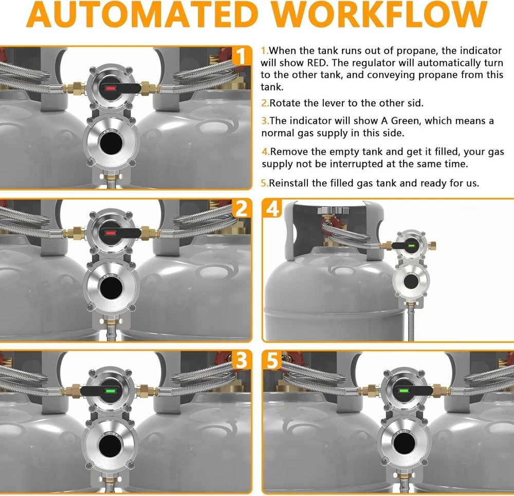 Reliable 2-Stage Propane Regulator & Hoses for RV/Camping - Uninterrupted Supply ‹ › ‹ › ‹ › ‹ › ‹ › ‹ › ‹ › ‹ › ‹ › ‹ › Reliable 2-Stage Propane Regulator & Hoses for RV/Camping Uninterrupted Supply Upgrade your outdoor experience with our 2-Stage RV Propane Regulator, ensuring a seamless and consistent gas supply for all your cooking, heating, and more. Features: Automatic Changeover: Connect up to 2 propane tanks, automatically switching from primary to reserve to maintain an uninterrupted flow. Easy Monitoring: Indicator light turns red to alert when propane needs to be refilled; equipped with a dial gauge that glows in the dark for easy reading. Durable & Weather-Resistant: Made from stainless steel braided hoses for superior durability, anti-aging, and heat-resistant performance. Specifications: Master Cylinder Capacity of 210,000 BTU/Hour; Reserve Cylinder at 130,000 BTU/Hour; constructed with 100% solid brass fittings. Wide Compatibility: Suitable for RVs with dual propane tanks, ensuring safe and reliable gas supply for all your propane-powered devices. Benefits: Reliable and constant gas pressure enhances the efficiency of your appliances. Seamless switching between tanks provides peace of mind while on the road. Easy installation, compatible with a range of propane tanks from 5-40 lbs. Peaceful camping experiences without worries about running out of propane unexpectedly. Why choose our Reliable 2-Stage Propane Regulator? Elevate your RV adventures with the ultimate peace of mind. Our 2-Stage Auto Changeover LP Propane Gas Regulator serves as your trusted companion, expertly designed to ensure your propane supply is both secure and efficient. Its robust materials stand the test of outdoor environments while providing you with user-friendly features. Don’t compromise on the reliability of your RV’s gas supply. Embrace convenience and safety; order your 2-Stage Propane Regulator and Hoses today! Package Includes: 1 PC 2 Stage Auto Changeover RV LP Propane Regulator 2 Pack 18'' Stainless Braided QCC1 1/4" Inverted Male Flare RV Pigtail Propane Hoses with Gauge 1 Roll Sealing Tape 1 Wrench Shipping Free & Fast Shipping - We offer free shipping to most of the USA with a normal delivery time of 3-7 days. However, due to the current situation, additional delivery time (up to 3 weeks) may be required for some items. Alternative Carriers - We may use alternative carriers (e.g. USPS, FedEx, UPS, etc.) to ensure your package arrives safely and on time. Due to the use of multiple carriers, we are unable to provide a tracking number automatically. Handling Time - Orders are processed and shipped within 1-2 business days of receiving cleared payment. Shipping Restrictions - Shipping to Alaska, Hawaii, Puerto Rico, Guam, and other US territories may incur shipping charges or delivery restrictions. Please contact us before ordering, or your order can be refunded/cancelled. State Restrictions - There may be restrictions based on your state of purchase. For example, certain items may not be shipped to California due to state regulations. Contact for Tracking Updates - If you require tracking updates or have any concerns about the delivery of your order, please feel free to contact us, and we will be happy to assist you. Return Please see our eBay Return Policy. Thank you. Payment We accept all major credit cards, PayPal, and Apple Pay for your convenience. Your payment information is secure and encrypted to ensure a safe and seamless transaction. Please complete your payment within 3 days of purchase to avoid any delays in shipping. Feedback Your feedback is extremely important to us. We strive to provide the best products and customer service possible. If you are satisfied with your purchase, please take a moment to leave us a positive review. If you have any concerns or issues with your order, please contact us before leaving negative feedback. We are committed to resolving any problems and ensuring your satisfaction. Contact Us If you have any questions or concerns, please feel free to reach out to our customer support team. You can contact us through the eBay messaging system. We are available Monday to Friday, 9:00 am to 5:00 pm EST, and we will do our best to respond to your inquiry within 24 hours. Thank you for supporting our small family business! Manufacturer Part Number: RV Propane Regulator UPC: Not Set MPN: Not Set Unit Quantity: 2.66 Brand: Unbranded Part Type: Accessories Country/Region of Manufacture: Not Set Warranty: 1 Year Unit Type: lb