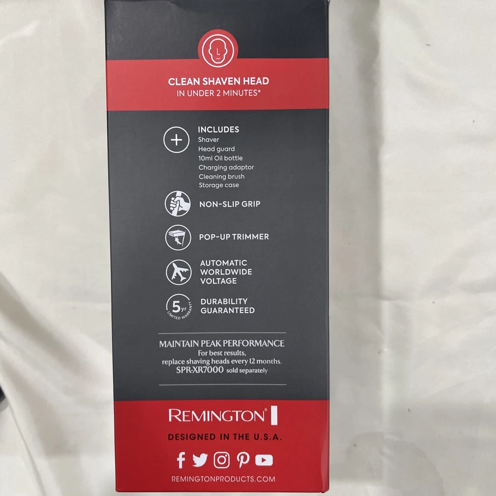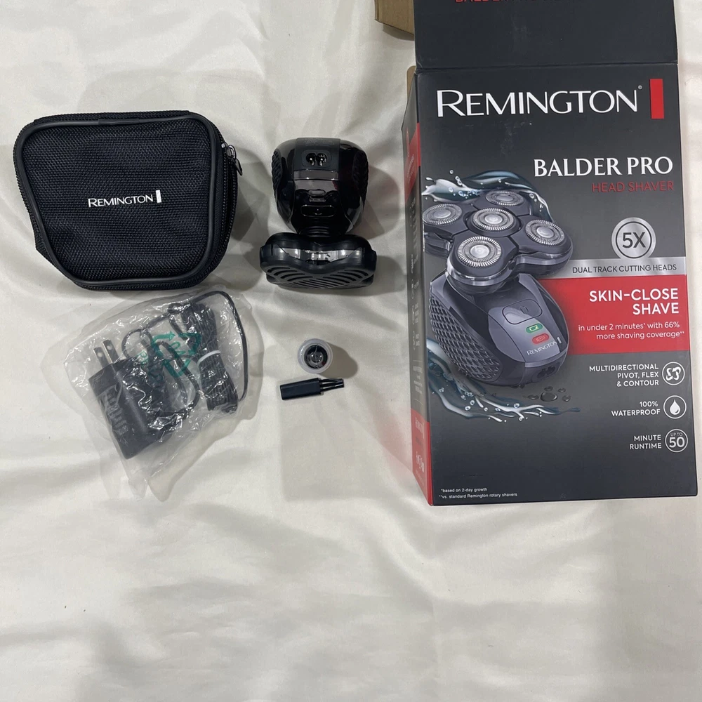 Experience the closest shave with the Remington Balder Pro Head Shaver XR7000, designed specifically for bald men who demand precision and comfort. This multi-function shaver features a pivoting head that adapts to the contours of your face, ensuring an efficient and comfortable shave whether you're wet or dry. The sleek black design is both stylish and functional, suited for use both at home and on the go with its convenient travel case. Equipped with five heads for comprehensive hair removal, the Remington Balder Pro offers a seamless grooming experience. This rotary shaver operates on a battery power source and includes a variety of features such as rechargeability, dual voltage, and waterproof construction, making it an adaptable tool for your personal care routine. Model XR7000 is perfect for those who value a combination of innovation and simplicity in their grooming accessories.