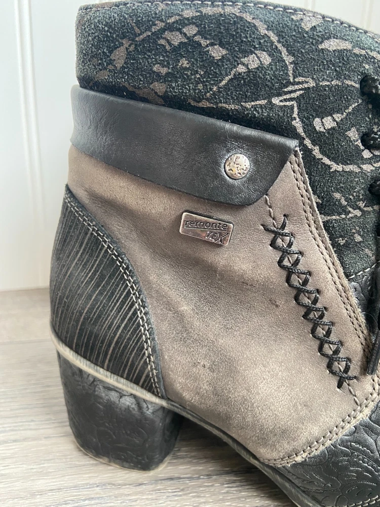 Elevate your equestrian look with these Remonte ankle boots. Crafted from high-quality leather, these boots feature an embossed pattern and lace-up closure for a chic and comfortable fit. The round toe and block heel style provide all-day comfort, while the ankle shaft style adds a touch of sophistication. Available in black and other sizes, these boots are perfect for any fashion-forward woman. These Remonte ankle boots are perfect for any occasion, whether you're headed to the office or out for a night on the town. The boots are designed with a laced closure for a secure fit and a round toe shape for a comfortable stride. Made from high-quality leather, these boots are sure to last for years to come.