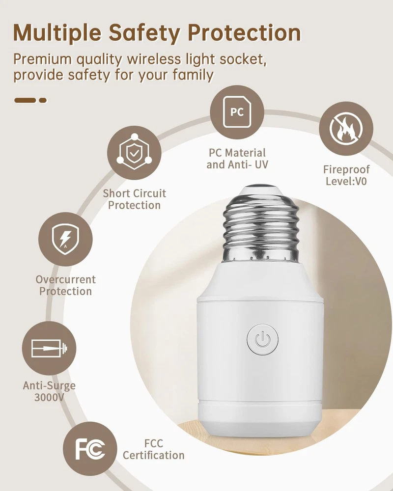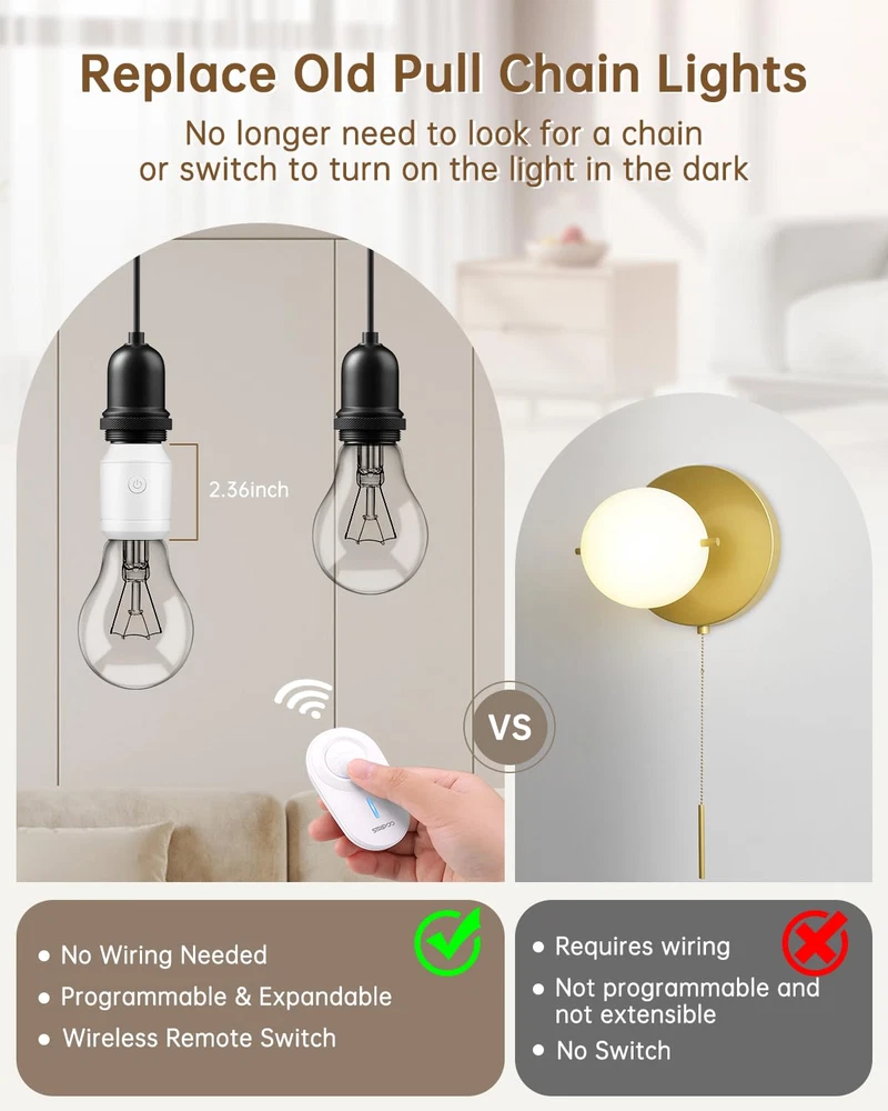 Store New Arrivals Add to Favorite View Feedback Contact Remote Control Light Socket E26/E27 Bulb Base Holder, Wireless Light Switch for Pull Chain Light Fixtures, 300FT RF Range, No Wiring Wireless Light Switch for 500W Light Fixtures Description Wattage 500 watts Material Polycarbonate (PC) Country of Origin China Package Dimensions 4.65 x 3.43 x 1.85 inches; 3.84 ounces Batteries 1 Lithium Metal batteries required. (included) Base Type Medium 【 Wireless Remote Control 】This remote control light socket allows you to pull chain light fixtures and traditional light switches. It can be easily installed by sticking wall switches, allowing you to easily control indoor lighting equipment remotely. 【300 FT RF range】Strong RF signal works through walls and doors without any interference; up to 300ft range in open areas;Suitable for open areas such as bedrooms, living rooms, and garages without interfering with other household appliances. Makes your life more convenient and efficient. 【Wide Compatibility】Our remote control light socket is suitable for most E26/E27 bulbs with power up to 500W, including LED bulbs, smart bulbs, CFL bulbs, fluorescent bulbs, corn bulbs, incandescent bulbs, halogen or tungsten bulbs, etc. . PS: This will increase the height of the bulb by 2.36 inches (6 centimeters). Please confirm the height of the lampshade before purchasing. 【High Quality and Durable Material】Wireless remote control light socket is made of fireproof PC material and Anti-UV, which can be effectively flame retardant and prevent switch from fading. This light socket ensures stable and convenient functions while also considering user safety. 【DIY Your Home】Remote light switches can be programmed and expanded at will, allowing one switch to control multiple light sockets simultaneously or multiple switches to control one light sockets simultaneously. It is the perfect solution to upgrade your smart life. Product Description 300FT RF Range Control Remote Control Light Socket For Higher Power Light Bulbs Multiple Safety Protection Premium quality wireless light socket, provide safety for your family. V0 Fireproof PC Material and Anti-UV Short Circuit Protection Overcurrent Protection Anti-Surge 3000V FCC Certification Wide Application Replace Old Pull Chain Lights Programmable and Expandable ABOUT US We offer the best prices around on high quality products. Our E-store includes media such as books, movies, music and games while offering electronics, toys, sporting apparel, clothing, tools, general home, garden items and more. SHIPPING We are always working hard to ensure your package arrives as soon as possible. Please understand that some factors like weather, high postal traffic, and the performance of shipping companies are outside of our control. We offer free shipping to the lower 48 states and ship within 2 business days of payment, usually sooner. We do not accept P.O. Boxes. Please provide a physical address. For shipping outside of the continental USA, we only use eBay's Global Shipping Program.The item is shipped to KY and then sent to the rest of the world. International customers are responsible for all duties and taxes. Continue to check out in order to calculate costs for shipping the item to your country. Messages regarding eBay's Global Shipping Program MUST be directed at eBay EXCLUSIVELY. RETURNS We offer a 30-Day Return Policy on items which you are not completely satisfied with. You have the option for a full-refund or an exchange of the item. No returns are available on items shipped outside of the USA. PAYMENT We accept PayPal. CONTACT US This page content is yet to come Please ad us to your favorite seller and visit again later Thank You CUSTOMER SATISFACTION We try our very best to make sure every customer is completely satisfied. If there's a problem, message us! We're happy to help. WE ACCEPT Copyright © 2021 AutoDS. | All Rights Reserved