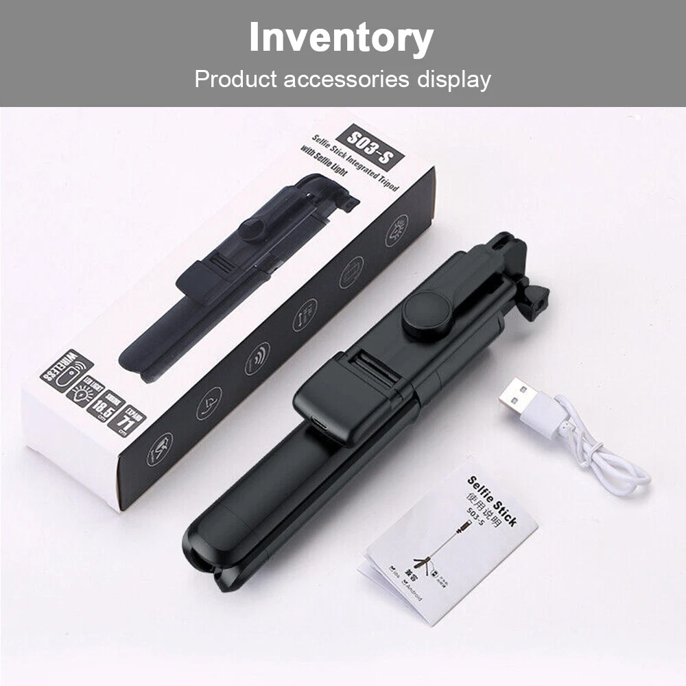 Meinuousa Your Best Online Business Partner Remote Selfie Stick Tripod with Fill Light Phone Desktop Stand Holder Universal Specifications: Wireless Range: 10m Material: ABS+Aluminum alloy Folded Length: 7inch Maximum Length: 23.6 inch Wireless Version: 3.0 Working Humidity: 10 ~ 70% Height of Tripod Stand: Max 25.6 inches Compatible Width of Smartphones:Max 4 (inch) No APP required! Simply connect by Wireless. Wide compatibility - Works with iOS (5.1 and higher) & Android (4.4 and higher) , such as iPhone 13 12 12pro 12 pro max 11 11pro XS Max XS XR X 8P 7P 6, Galaxy S20 S10 S9 S8. Features: --100% brand new and high quality. --2 in 1 Design - A Wireless selfie stick also as a tripod with remote control shutter. --Wireless 3.0 - Fast connecting speed and low engery cost makes the battery life extreme long. --Long operational distance - Max. operation distance up to 33 feet thanks to the latest Wireless technology. --Anti-slip mini pads on the phone holder's clamp guarantees firm holding performance for mobile phone. --Adjustable foldable monopod: 7 inch folding length,compact size, portable, very easy to store. --Removable wireless remote controller: Wireless remote is integrated with the selfie stick tripod. It can be used independently. come wirh CR1632 --Ratable holder head design, supports 360° rotation, more flexible shooting angles for you. --Adjustable telescoping stick with 23.6inch max. usage length, allows you to get wider photoing range. --With fill light, it can fill light properly when the light is relatively dark Package included: 1x Selfie Stick Tripod Payment Shipping Returns Contact Us About US - We accept the payment through :Credit, debit, and gift cards, Apple Pay, Google Pay, PayPal, and PayPal Credit. - Payment must be fulfilled within 4 days after the end of auction. - Please make sure your ebay address is correct. Or not, please correct it before payment. - If you are a big customer, Please contact with us about the item's PRICE and SHIPPING. - Your feedback & suggestion is deeply appreciated, thanks. 1. Please make sure your address in ebay is correct. 2. We will only follow your address listed in the ebay orders for the shipment. 1. We can exchange the item within 30 days after you received it if it is defective. 2. Returned item must have all original packaging and accessories. 3. Buyer are responsible for the returning shipping costs. 1. We greatly appreciate your POSITIVE feedback. 2. Negative or Neutral feedback does not resolve any underlying issues that you may be experiencing as a buyer. 3. Any question or unsatisfaction please contact us with ebay message, we will sincerely solve for you. Feedback is very important to us, if you are satisfied with us, please leave us 5 star positive feedback to us. If you h have any problem, please contact us first BEFORE you give us neutral or negative feedback, so we can try our best to help you solve your problem. All rights reserved.