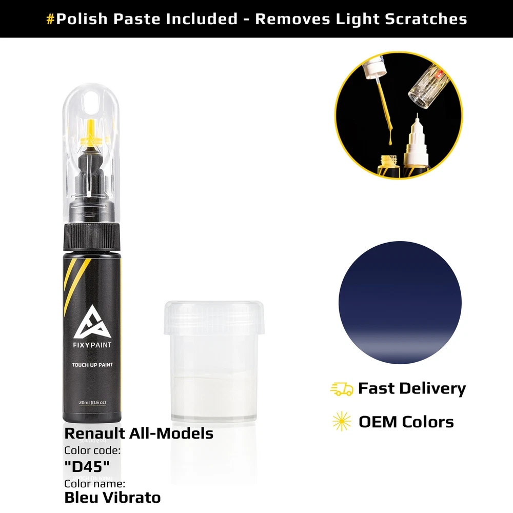 FixyPaint - Professional Car Scratch Repair Kits 🚗 Fix Your Car’s Scratches Fast & Easy! European Quality • Exact Color Match • Trusted by 25,000+ Drivers European Precision Quality Certified 60-Day Guarantee 🌍 Made in Europe 🔍 Quality Certified 🌱 Eco-Friendly Formula Why Choose FixyPaint? 💰 Affordable Fix Professional results at a low cost 🎯 Exact Color Match Over 100,000 color codes for all cars ⏱️ Fast 5-Minute Fix No appointment needed 👍 Easy for Anyone Simple to use, no experience required Pick Your Kit 🎨 Paint Only For quick touch-ups: 20ml matched paint Brush for applying Needle for applying Best for: Quick fixes ⭐ Paint + Polish Paste For a polished look: All Paint Only items 15ml gloss polish Best for: Smooth, polished results 💎 Full Kit For a complete fix: All Paint + Polish Paste items Microfiber cloth Protective glove Best for: A complete, hassle-free fix 🌍 European Quality 🛡️ 60-Day Money-Back 📦 Shipped from Europe 🌱 Eco-Certified 3 Simple Steps 1. Find Your Color Code Check your car’s door frame, trunk, or hood. 2. Clean the Scratch Use a mild cleaner and dry it well. 3. Apply the Paint Use the brush or needle, let it dry, then polish. Frequently Asked Questions ❓ Will it match my car? Yes! Provide your color code for a perfect match. ❓ Does it last in weather? Yes, it’s tested for all climates and car washes. ❓ Is it hard to use? No, it’s simple with clear instructions. 60-Day Guarantee Not happy? Get a full refund within 60 days! We also cover you if the package arrives damaged or the color doesn’t match—sometimes things happen, and we’ve got your back. eBay Buyer Protection • Shipped from Europe Important: Ensure you order the correct color code. If the paint is affected by weather conditions, it may take some time for fresh paint to blend. All images are copyrighted. Use without permission is illegal. © FixyPaint.