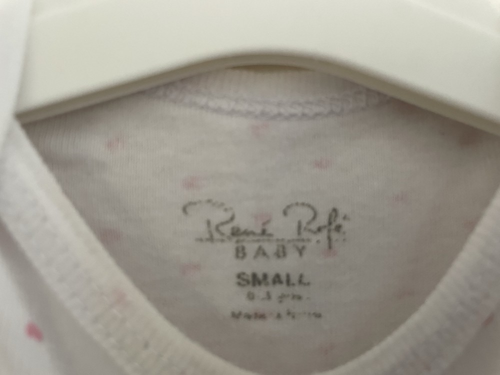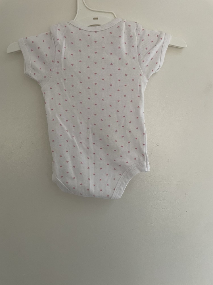 Rene Rofe Baby Girls Allover Hearts 100% Cotton Short Sleeve Bodysuit White 0-3M. Condition is pre-owned. Smoke free, pet free home. Shipped via USPS Ground Advantage. In good condition. Free of rips or stains.
