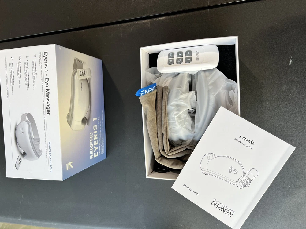 Renpho Eyeris 1 Eye Massager w/ Bluetooth Music Sound, Heated, Soothes Eyes. This item was used only a few times. My eyes are closer together than most and the massager part just didn’t fit correctly on my eyes. Nothing wrong with the product. I actually loved it. Just need something smaller. All pieces and box available.