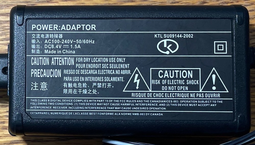 12V 1.5A Switching Power Adapter Model: TQ-1201500u Input: 100-240V~ 0.5A Max