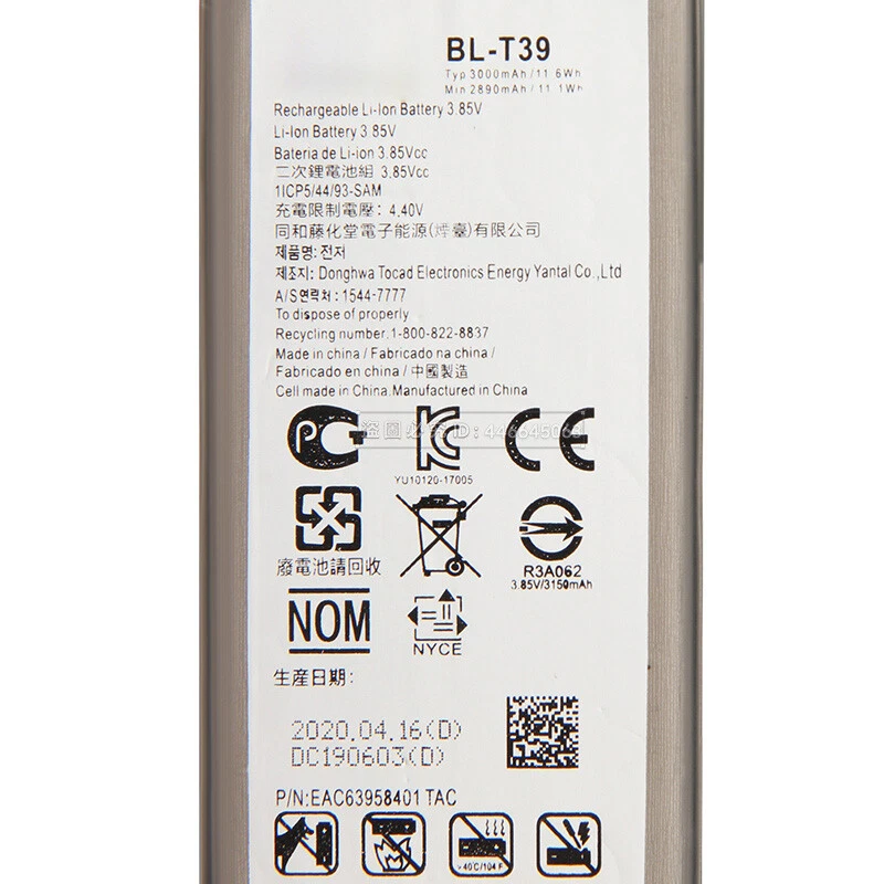 This product ensure that the purchase is from the mobile phone manufacturers accessories sales channels ,absolutely 100% genuine original Battery attributes: original battery Battery Type:BL-T39 Battery capacity: 3000mAh Voltage limit: 3.85 Compatible with: For LG G7 ThinQ G710 Q7+ LMQ610 G7+ ThinQ Battery Country of Origin: China Packing specification: Bulk Important: New Lithium Ion batteries must be FULLY CHARGED and FULLY DISCHARGED 2 to 3 times, before being FULLY CONDITIONED. Please remember that a new Lithium-Ion battery's full performance and longevity is only achieved after 2 to 3 complete charge and discharge cycles. After you go through 2 to 3 cycles, you'll never have to condition your battery again! All talk and standby times are approximate, depending upon carrier's network settings, signal strength, and features selected. Talk and Standby times will be lower in Analog mode as noted above. Dear customers and friend: when you buy my product,if anything unusual happens:Not received the items, or inconsistent with the description, or other reasons make you not satisfied. Please do not leave neutral (or negative )feedback or open case easily, please feel free to write to contact me. We will do our best service to solve your problem. I believe that good communication can resolve everything. Again thank you so much. We appreciate your understanding and patience.