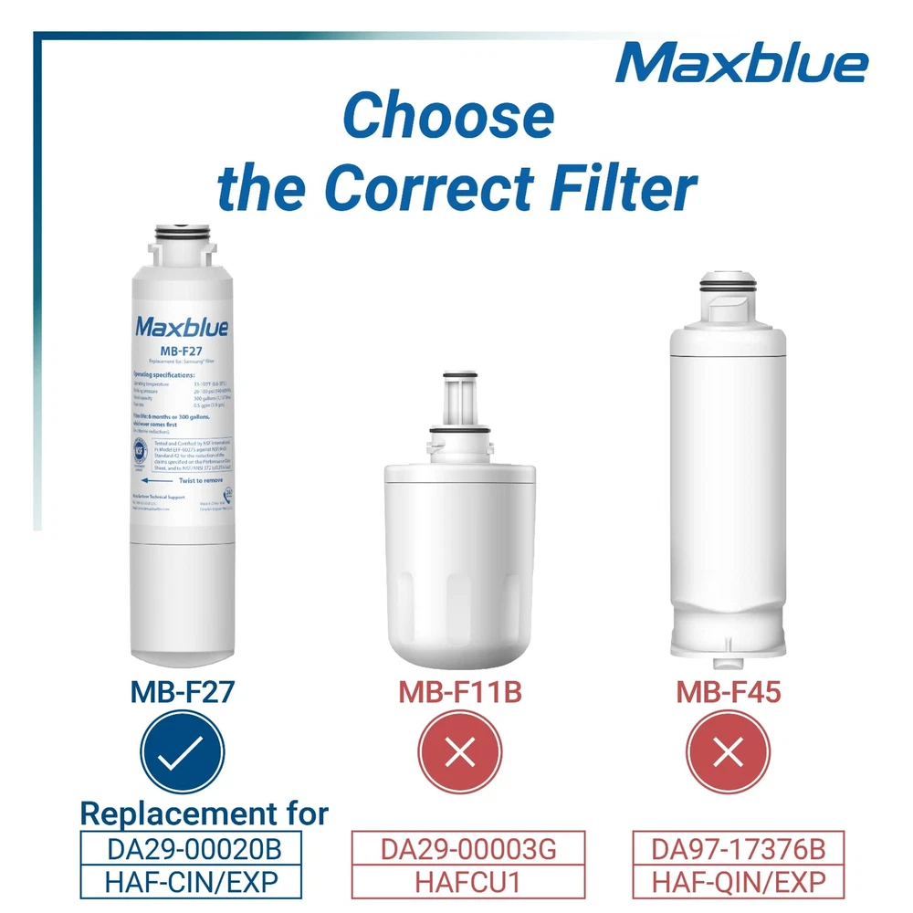 Paramount of Purity That is what pursues! Certified by NSF 42 MB-00020B-P refrigerator water filter is certified by NSF International against NSF 542 to reduce health-related contaminants Compatible Refrigerator Models RF22K9381SG, RF22K9381SR, RF22K9581SG, RF22KREDBSG, RF22KREDBSR, RF22M9581SG, RF22M9581SR, RF23HCEDBBC, RF23HCEDBSR, RF23HCEDBWW, RF23HCEDTSR, RF23HSESBSR, RF23HTEDBSR, RF23J9011SG, RF23J9011SR, RF24FSEDBSR, RF24J9960S4, RF25HMEDBBC, RF25HMEDBSG, RF25HMEDBSR, RF25HMEDBWW, RF260BEAEBC, RF260BEAESG, RF260BEAESP, RF260BEAESR, RF260BEAEWW, RF261BEAEBC, RF261BEAESG, RF261BEAESP, RF261BEAESR, RF261BEAEWW, RF263BEAEBC, RF263BEAESG, RF263BEAESP, RF263BEAESR, RF263BEAEWW, RF263TEAEBC, RF263TEAESG, RF263TEAESP, RF263TEAESR, RF263TEAEWW, RF265BEAESG, RF265BEAESR, RF26HFENDSR, RF26J7500BC, RF26J7500SR, RF26J7500WW, RF28HDEDBSR, RF28HDEDPWW, RF28HDEDTSR, RF28HFEDBBC, RF28HFEDBSG, RF28HFEDBSR, RF28HFEDBWW, RF28HFEDTBC, RF28HFEDTSR, RF28HMEDBBC, RF28HMEDBSR, RF28HMEDBWW, RF28HMELBSR, RF28JBEDBSG, RF28JBEDBSR, RF28K9070SG, RF28K9070SR, RF28K9380SG, RF28K9380SR, RF28M9580SG, RF28M9580SR, RF30HBEDBSR, RF30HDEDTSR, RF30KMEDBSG, RF30KMEDBSR, RF31FMEDBSR, RF31FMESBSR, RF323TEDBBC, RF323TEDBSR, RF323TEDBWW, RF32FMQDBSR, RF34H9950S4, RF34H9960S4, RH22H9010SG, RH22H9010SR, RH25H5611BC, RH25H5611SG, RH25H5611SR, RH25H5611WW, RH29H9000SR, RS25H5000BC, RS25H5000SR, RS25H5000WW, RS25H5111BC, RS25H5111SG, RS25H5111SR, RS25H5111WW, RS25H5121BC, RS25H5121SR, RS25H5121WW, RS25J500DBC, RS25J500DSG, RS25J500DSR, RS25J500DWW, RF28HFEDTWW, RF26HFENDWW, RF26HFENDBC, RF4287HARS, RS265TDRS, RS261MDWP, RS261MDBP, RS263TDBP, RS265TDBP. refrigerator water filter not only features prior filtration performance but also certified by authority NSF 42 and 372 for lead-free materials. Brilliant filtration: The filter can reduce a wide range of harmful substances in water including heavy metals, chlorine, odor, THM, VOCs, particles, cadmium, and all other major impurities, which has been tested by an independent third-party laboratory. Perfect fit: Our professional research team make effort to produce perfect fit refrigerator filters with exquisite engineering design without water leakage issues. Premium filter material: adopts 100% selected coconut shell carbon block that contains larger surface area and more micropores than inferior carbon block. Pure-tasting water: The adopted filter material in this replacement refrigerator filter adsorbs better. So, you get clean, fresh, and great-tasting water at all times. Month install stickers: Simply stick it onto your replacement water filters to know when it’s time to change it. Keep you drinking fresh with a little add-on. The filter life is 6 months or 300 gallons, which will vary based on the water condition. Hassle-free installation: The way we spend our time defines who we are. strives to save your precious time by offering tool-free refrigerator filter replacement. Be responsible for each product: Each product or even a small component manufactured by has to pass extremely high-standard examinations to reach the top requirement on the market. It’s not an ending if the filter leaves our factory. We will take responsibility for each of them. Replacement for models: Samsung DA29-00020B, DA-97-08006A-B, DA-97-08006A, DA-97-08006A-B, DA-97-08006B, DA29-00019A, DA2900019A, DA2900020A, DA2900020A, RF28HMEDBSR, DA29-00020A/B, HAF-CIN/EXP, RF4287HARS, RF263TEAESG, A97-08006A, RH22H9010SR, RF23J9011SR, RS25J500DSG, RF23HCEDBSR, RS25H5111SR, RF263BEAESG, RF28HFEDBSR, RF22KREDBSR, RS25J500DSR, RF28HDEDBSR, RF28K9380SG, RF25HMEDBSR, RF26J7500SR, DA29-00020A, HAF-CIN, HAF-CIN-EXP, HAF-CINEXP, HAFCIN, 04609101000, 09101, 46-9101, 469101. Replacement for multiple models: WS627, CF7, AQF-FF27, WD-F27, WDS-F27, WDP-F27, FL-RF27, RWF0700A, GF-20B, PL-200, CWMF021, FIN-7, R-9101, APF-0300, WF294