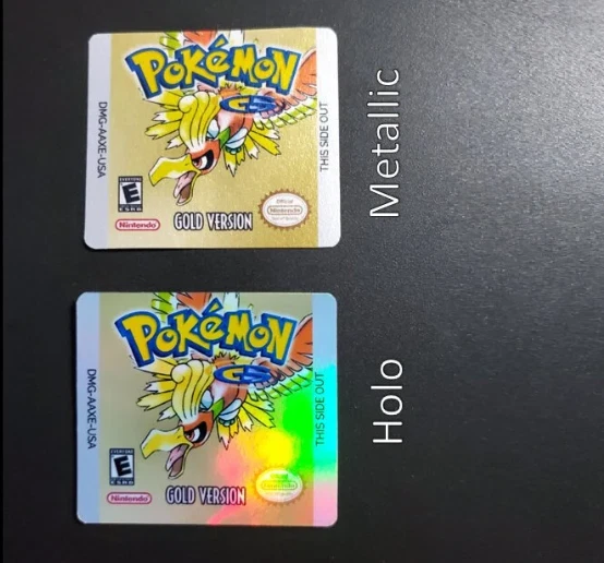 Pokemon Gold label. Metallic or Holo options available I recommend removing any residue in its entirety first. If any damage occurs during application, I will replace the label at no cost. Pitney Bowes tracking link: https://parcelsapp.com/en/carriers/pitney-bowes