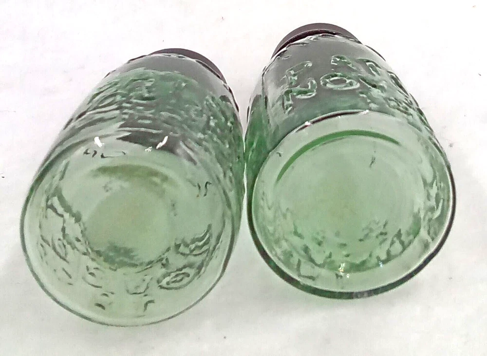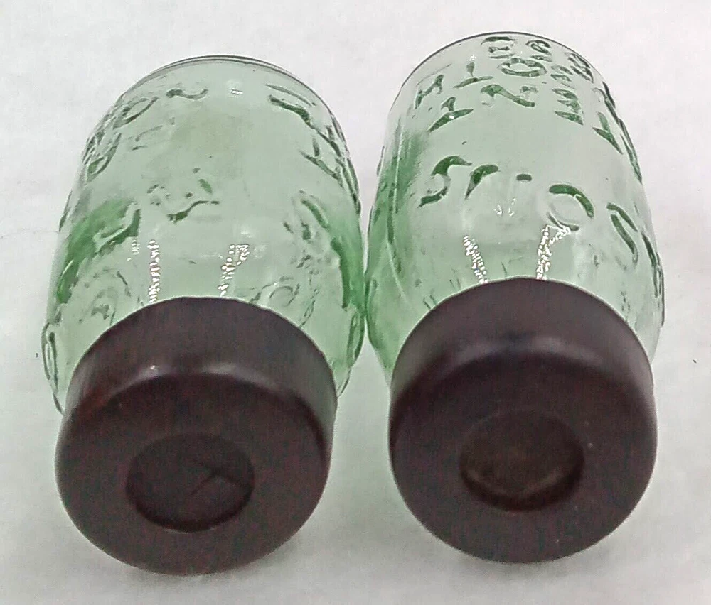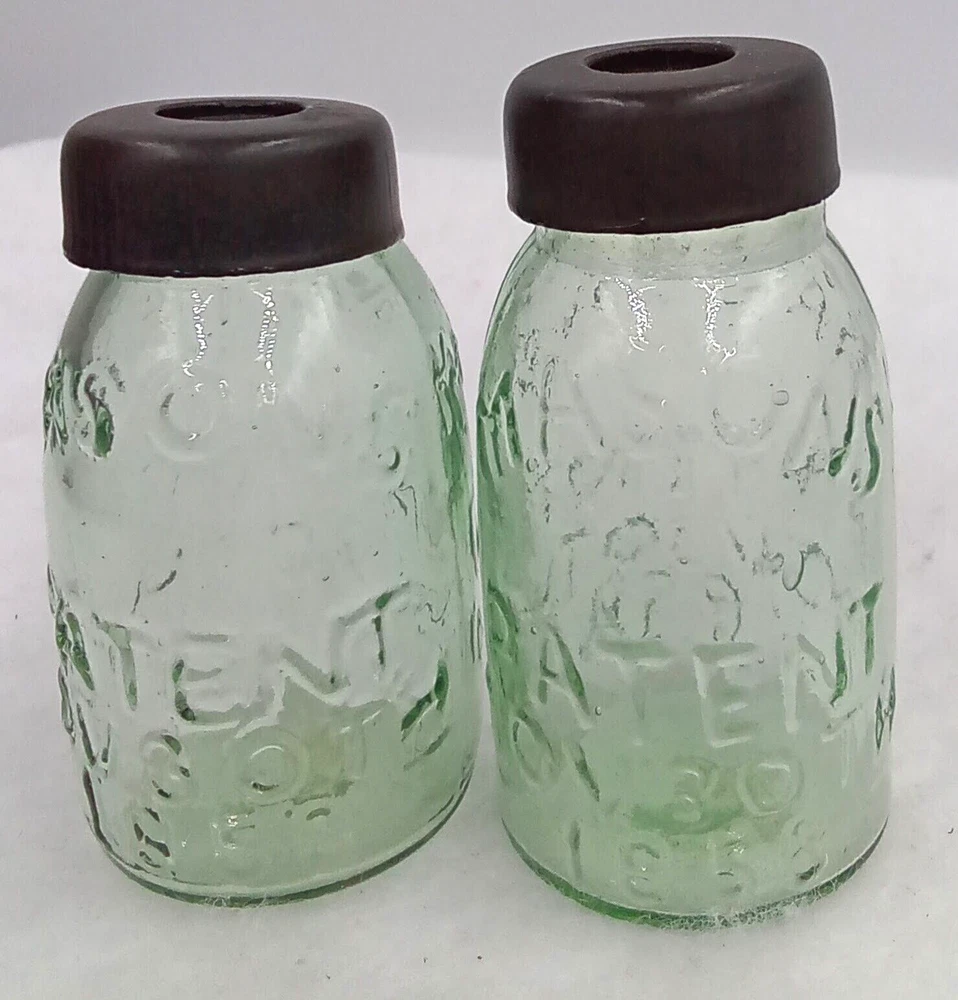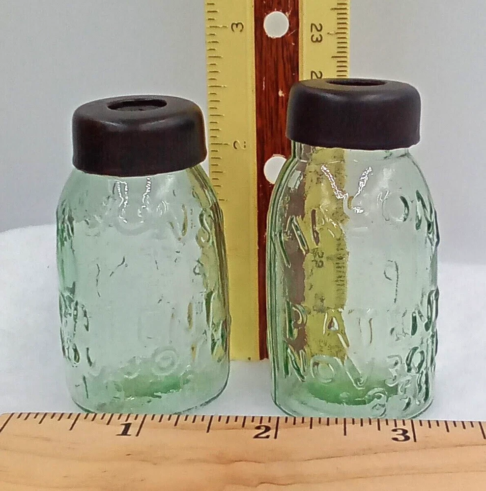 Repro Miniature Mason Jars Figurines Vase Home Decor Green Black Caps Set of 2