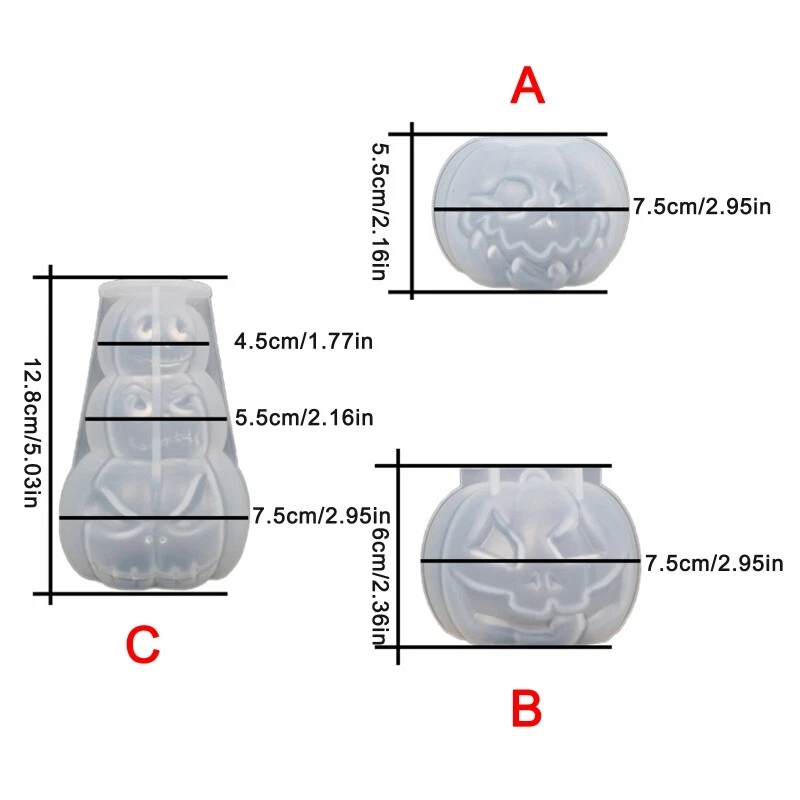 Resin Casting Silicone Mold for DIY Soap Halloween Favor Features: and high HALLOWEEN THEME This 3D molds are featuring Halloween pumpkin for DIY crafting candles, aromatherapy soaps, Halloween decorations, resin desk ornaments, or for DIY epoxy resin casting. HIGH All these pumpkin molds are top silicone. odorless, safe and reusable, anti-scratch, washable, dishwasher safe, not easy to deform while easy to de-mold. PERSONALIZE DECORATION. For making exquisite scented candles or soaps, you can add various crafting materials, such as essential oils, dried flowers, glitter powder, aromatherapy fragrances, gold foil, sequins, embellishments or any you like. EASY TO USE. Just pour the melting liquid wax or epoxy resin and wait for cold process. It is microwave, oven, refrigerator, freezer safe. for making scented candles, soaps, room ornaments, GREAT Super soft and flexible, non-stick, the finished candles are easy to for out of the molds. for for girls, student, designers, artists, craft hobbyists on Thanksgiving, Christmas, Birthday, Specifications: Silicone Type: Ridicule; Distress; Three Pumpkins Small Size: Approx. 7.5x5.5cm/2.95x2.17in Large Size: Approx. 7.5x12.8cm/2.95x5.03in Color: As Picture Shown Weight: Approx. 47g-94g Package Includes: 1 X Halloween Pumpkin Mold note: Please allow 0-1cm error due to manual measurement. pls make sure you do not mind before you bid. Due to the difference between different monitors, the picture may not reflect the actual color of the item. Thank you!