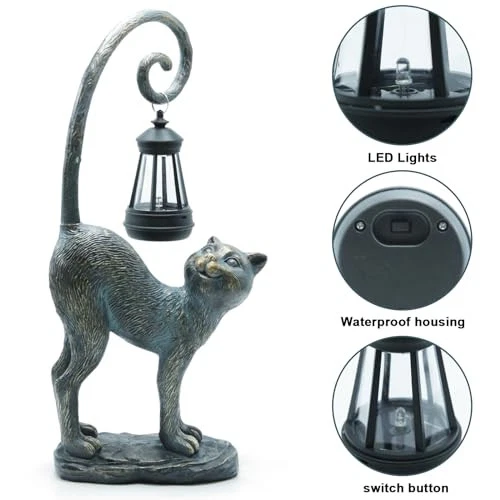 30 Days Return Policy Fast Delivery Trusted seller Resin Cat Statue with Solar Lantern, Eye-catching Garden Sculpture Decor,15.3" Height Outdoor Figurine for Garden Yard Patio Decorations,Birthday Gifts Product Description Compact Size: Please note that this Solar cat statue is not a large sculpture. Its compact size is perfect for accentuating your space without overwhelming it. (15.3" x 7.3" x 3.5“ ) Safe and Non-Toxic: Crafted with your safety in mind, this garden sculptures & statues is made from high-quality resin materials that are safe and non-toxic for both indoor and outdoor use. And the garden statues is built to withstand the elements, ensuring long-lasting beauty for your space. Charming Handcrafted Design: This cat statue captures the essence of a playful cat, complete with a lifelike expression and an intricately designed tail that holds a beautifully crafted solar lantern. Solar-Powered Lantern: The solar lantern automatically charges during the day and emits a warm, inviting glow in the evening, creating a magical ambiance in your chosen location.No wiring or electricity is required. Simply place the statue in a sunny spot, and it will light up your area after dark. Versatile Placement: Suitable for a variety of indoor and outdoor scenes, this cat outdoor decoration can be a charming addition to your garden, patio, living room, or any space you choose. Perfect Gift: This solar cat statue makes a thoughtful gift for cat lovers, garden enthusiasts, or anyone who appreciates unique and charming decor. Shipping Returns Payment Shipping Shipping is FREE to all addresses other than APO/PO boxes in the lower 48 states. All our stock ships from US-based warehouses. Shipped via USPS or UPS (depending on location and package weight) Unless stated otherwise, all orders will ship within 24-72 hours of your payment being processed. Check our feedback to see the great reviews of FAST shipping we offer. Returns As our valued customer, we will do our best to make sure the product you receive arrives to you on time and as expected. If you are not satisfied with your purchase, please contact us within 30 days of receiving your order to process a return. Payment We currently accept payment via eBay managed payments only. Once payment is cleared, we will dispatch your shipment within 1-3 business days. Please refer to the "Shipping" tab for more information regarding shipping speed to your destination.