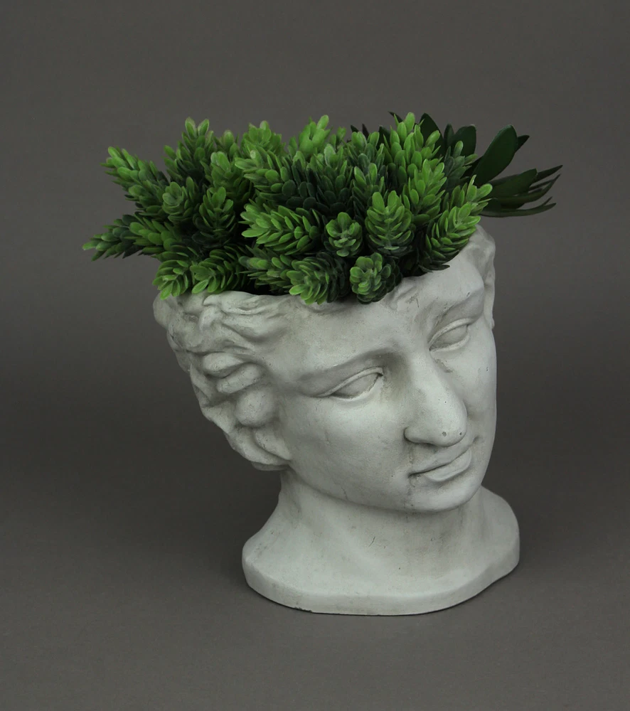 Plant some exotic greenery and transform this weather-worn bust into a garden classic! This decorative statue head planter brings a touch of antiquity to your home and garden. Crafted from resin for a long-lasting planter, it sports an off-white aged look to capture the worn beauty of an old statue. Measuring 7.25 inches long, 7 inches wide, and 7 inches high, this planter is a great way to add some personality to any room, porch, patio, or gardening area and is perfect for succulents, greenery, or other floral blooms. Our eBay Store About Us Add to Favorite Sellers Resin Classic Greek Statue Head Planter Decorative Bust Flower Pot Plant Vase OVERALL SIZE - 7.25 Inches Long, 7 Inches Wide, 7 Inches High DURABLE MATERIAL - Crafted of High Quality Resin For Years of Maintenance Free Display UNIQUE FINISH - Off-white Weathered Finish Creates a Classic Aged Look CLASSICAL STYLE - Renaissance Design Adds Elegance To Any Decor WONDERFUL GIFT - For Yourself or your Plant Loving Friends Plant some exotic greenery and transform this weather-worn bust into a garden classic! This decorative statue head planter brings a touch of antiquity to your home and garden. Crafted from resin for a long-lasting planter, it sports an off-white aged look to capture the worn beauty of an old statue. Measuring 7.25 inches long, 7 inches wide, and 7 inches high, this planter is a great way to add some personality to any room, porch, patio, or gardening area and is perfect for succulents, greenery, or other floral blooms. Product Details Color Off-white Height 7 Length 7.25 Weight 3.65 LB