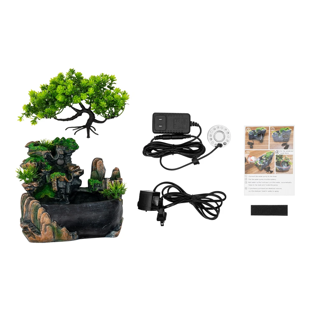 Description Beautiful, symbolic decorations can make people feel better. This tabletop fountain ornament is worth buying. It is beautiful and has a good symbolism of gathering wealth. Meanwhile, the sound of flowing water can regulate your mood, relieve stress, and relax your body and mind, allowing you to enjoy a rare relaxing time in your busy life. Key Features High-quality Material: This tabletop fountain ornament is made of resin, which is environmentally friendly, corrosion and aging-resistant to offer great durability to this product. Stress Relief: The trickling water illuminated by the light is bright, fresh, and beautiful. Listening to the sound of gurgling water adds a different natural atmosphere to the space and will soothe your mood and release your stress after a day's wo Resin Desktop Fountain Waterfall Rockeries Bonsai Decoration Living Room Office Description Description Beautiful, symbolic decorations can make people feel better. This tabletop fountain ornament is worth buying. It is beautiful and has a good symbolism of gathering wealth. Meanwhile, the sound of flowing water can regulate your mood, relieve stress, and relax your body and mind, allowing you to enjoy a rare relaxing time in your busy life. Key Features High-quality Material: This tabletop fountain ornament is made of resin, which is environmentally friendly, corrosion and aging-resistant to offer great durability to this product. Stress Relief: The trickling water illuminated by the light is bright, fresh, and beautiful. Listening to the sound of gurgling water adds a different natural atmosphere to the space and will soothe your mood and release your stress after a day's work. LED Light Source: The energy-saving LED doesn't cause much economic and environmental burdens. And it is available in high brightness and color changes (red, yellow, blue) to add vitality to your home. Purify the Air: The flowing water and mist released by the atomizer can adsorb dust, bacteria, and small fibers in the air, thus purifying the air and your living space. Nature's Imitation Landscape: Artificial trees, rockeries and a small pond with a rustic charm bring the natural beauty of the outdoors into the indoor space, creating a beautiful centerpiece for dining tables and desks. Lower Noise: Its low-power pump and atomizer release less sound, which won't disturb your study, work and sleep. Beautiful Symbolism: In China, fortune trees and running water symbolize wealth. By placing it in your living room or office, you will be more and more convinced that your good luck and career can be enhanced. Suitable Size&Lightweight : The ornament (6.7*7*5.9inch) won't take up much space. Whether you put it in your home or office, it will not affect the overall layout. The lightweight (2.5lbs) allows it to be easily moved anywhere for decoration. Ideal Gift : It can be used as a relaxing fountain, or as a family decoration in the living room or bedroom, making it a good choice for parents, friends and lovers on various holidays. Details Anti-slip Mat: The anti-slip mat that is stuck to the bottom keeps it standing firmly on the table without tipping. Reserved Hole: The small hole left behind the rockery can hide the water pump and beautify the overall ornament. Small Pond: The small pond allows you to keep some small fish in it to add vigor and life to the whole space. Small Platform: Just add some soil to the small platform on the right to place small succulent plants so that you can feel the freshness from real plants. Application This ornament can be widely used in the living room, bedroom, study, office, meditation room, yoga room, hotel, and library to create beautiful scenes and a relaxed peaceful atmosphere. Installation Steps 1. Connect the water pump to the hose. 2. Put the water pump into the rockery. 3. Add water to the front pool until the water automatically flows to the back and floods the pump. 4. Put the atomizer in the pool to spray. Specification Color: Black, Green Material: Resin, Plastic Mounting Type: Tabletop Special Feature: Fountain, Led Light, Lightweight Power Source: Corded Electric Water Pump Power: 2W Atomizer Power: 21W Voltage: 220V Light Source: LED Light Color: Red, Yellow, Blue Gross Weight: 1.4kg/3 lbs Net Weight: 1.15kg/2.5lbs Product Size: 17*18*15cm/6.7*7*5.9inch Package Size: 25*18.5*29cm/9.8*7.3*11.4inch Package Included 1* Tabletop Fountain Ornament 1* Water Pump 1* Atomizer 1* Non-slip Mat 1* English Installation Instructions Notes Please do not turn on the pump without water. The pump should be placed in water with the water level above the pump. Changing water and cleaning the pump regularly can make the product and accessories last longer. The area 6cm up from the surface of the water is the spray zone and it is recommended to be left uncovered. Please allow the slight color difference caused by the shooting light and 1-3 cm error due to manual measurement, and make sure you do not mind before ordering. Welcome to highcredit1188 ~ 😊 If you have any question , please contact us , and we will reply you as soon as possible. Welcome to highcredit1188 ~ 💛 If you have any question , please contact us , and we will reply you as soon as possible. Payment Delivery details Terms of sales About us Contact us Payment We accept ebay payment 。 Fees such as import duties, taxes are not included in the item price or shipping costs. These charges are the buyer's responsibility. Delivery details Shipping: 2-9 working days to: USA Terms of sales We maintain high standards of excellence and strive for hundred percent customer satisfaction. Feedback is very important to us. We hope that you contact us immediately before you give neutral or negative feedback, so that we can address your concerns. It is impossible to address issues if we do not know about them! About us Your satis faction is our ultimate goal. We work hard to earn your trust and future business. Our certified technicians have tested each