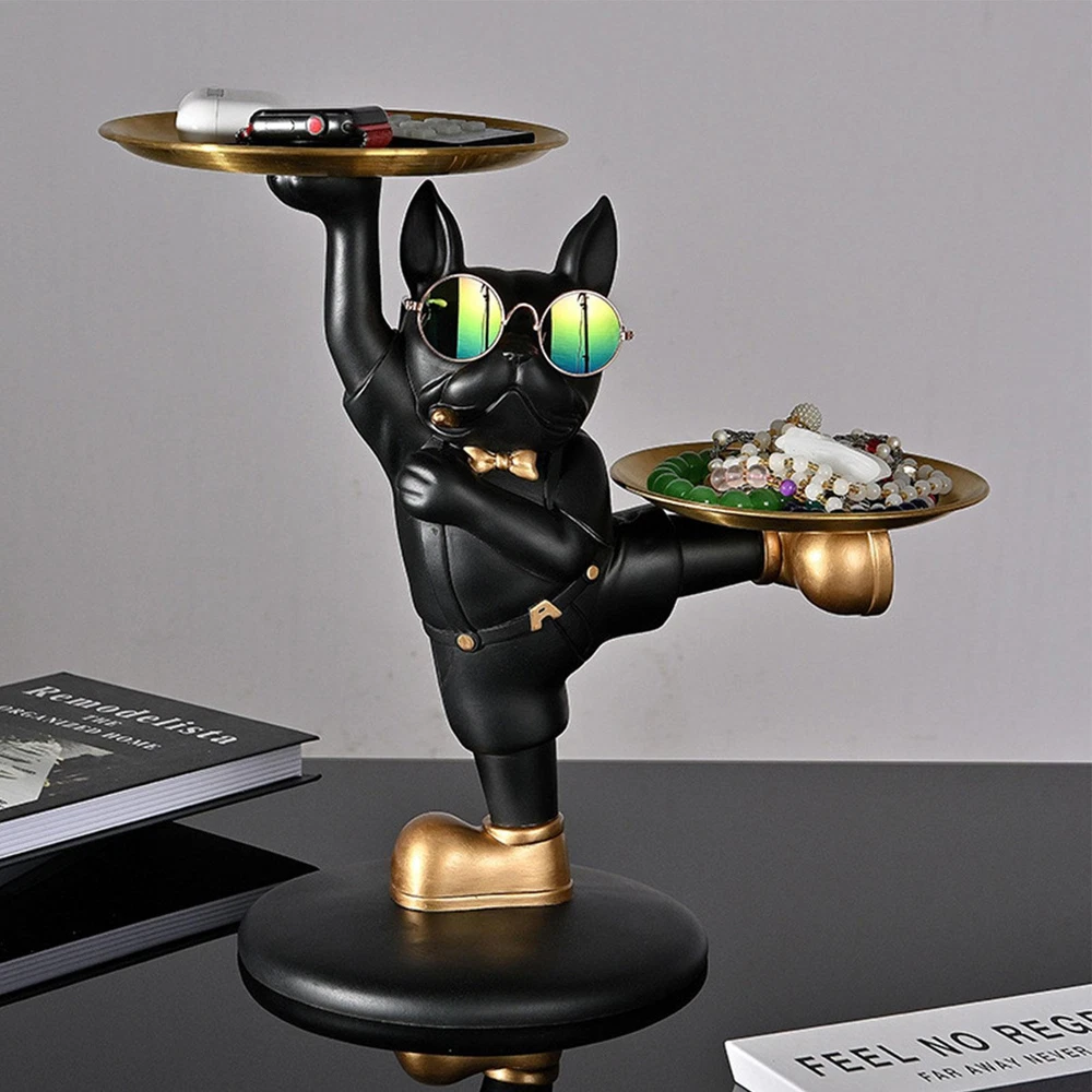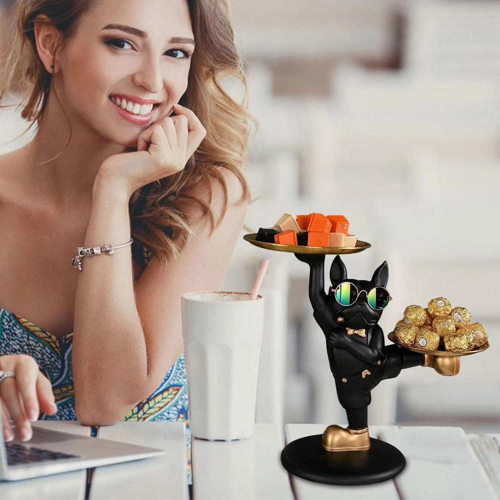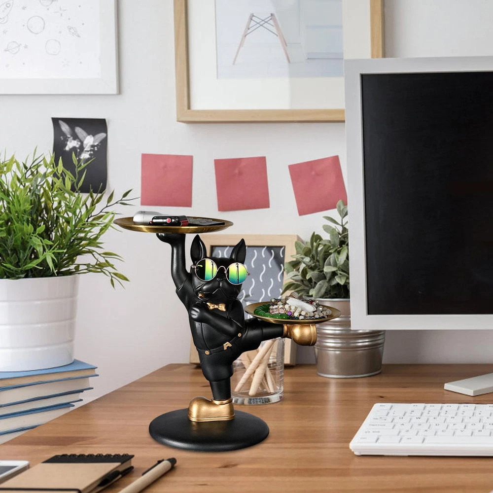 Resin French Bulldog Ornaments with 2 Tray Dog Statue Decor for Cake Biscuit Key Cool French Bulldog Shape: This modern art statue features a cool french bulldog wearing sunglasses and overalls suit, holding trays in a fancy style. It adds a touch of personality and charm to your home decor. Easily Organize Your Items: This french bulldog statue has double trays that are detachable, allowing you to store and display your items with ease. No more messy and cluttered spaces, just a neat and orderly home. Durable and Easy to Clean: This french bulldog statue is made of resin material, which is sturdy and long-lasting. The stainless steel trays are easy to wipe and wash, keeping them shiny and clean. Wide Range of Application: Whether you want to decorate your living room, bedroom, entryway, or working place, this french bulldog statue will add some elegance and fun to your space. With its practical stainless steel trays and funny pose, it will also bring you a good mood every day. Warm Gift for Any Occasion: This french bulldog statue is not only a cute and charming decoration, but also a practical holder for your phone, keys, jewelry, and other items. It is a perfect gift for anyone who loves dogs and needs a remote organizer. Are you looking for a cool and unique way to organize your space and show off your love for dogs? If so, you will love this french bulldog statue! This statue is made of high-quality resin material and has a funny pose that will make you smile. It also has two detachable trays that can hold your phone, keys, jewelry, and other items. You can use it as a remote holder, a desk organizer, or a decorative accessory for any room. It is a great gift for dog lovers and anyone who appreciates style and functionality. Order yours today and enjoy this cute and handy holder! Specification: Name: French Bulldog Statue Jewelry Dish Size: about 33*31*18cm/12.9*12.2*7inch Weight: 300g Material: resin + stainless steel Packing List: 1*Key Holder Tray 1.You can make a Credit payment via Paypal.Paypal will let you use MasterCard,Visa to pay. 2.Payment should be completed within 5 days after auction closed, or unpaid dispute will be filed for an closing auction.An unpaid case will be filled after 4 days. ● We strive for 100% customer satisfaction ! ● Positive Feedback is very important to us. ● We hope that you contact us immediately BEFORE you give us neutral or negative feedback, so that we can satisfactorily address your concerns. ● We promise to offer the lowest price and high quality produce. Dear buyers : ● Welcome to my store ! ● Your satisfaction is our top goal,we appreciate your patronizing. ● If you have any questions, please contact us before leave negative or neutral feedback, we will try our best to solve the issue to your satisfaction, thanks ! ● If you are satisfied with our service, please rate the details of the transaction (Detailed Seller Ratings) on eBay. ● Please always talk to us via ebay Message. ● We appreciate your business and look forward to growing our e-Bay sales with satisfied customers.