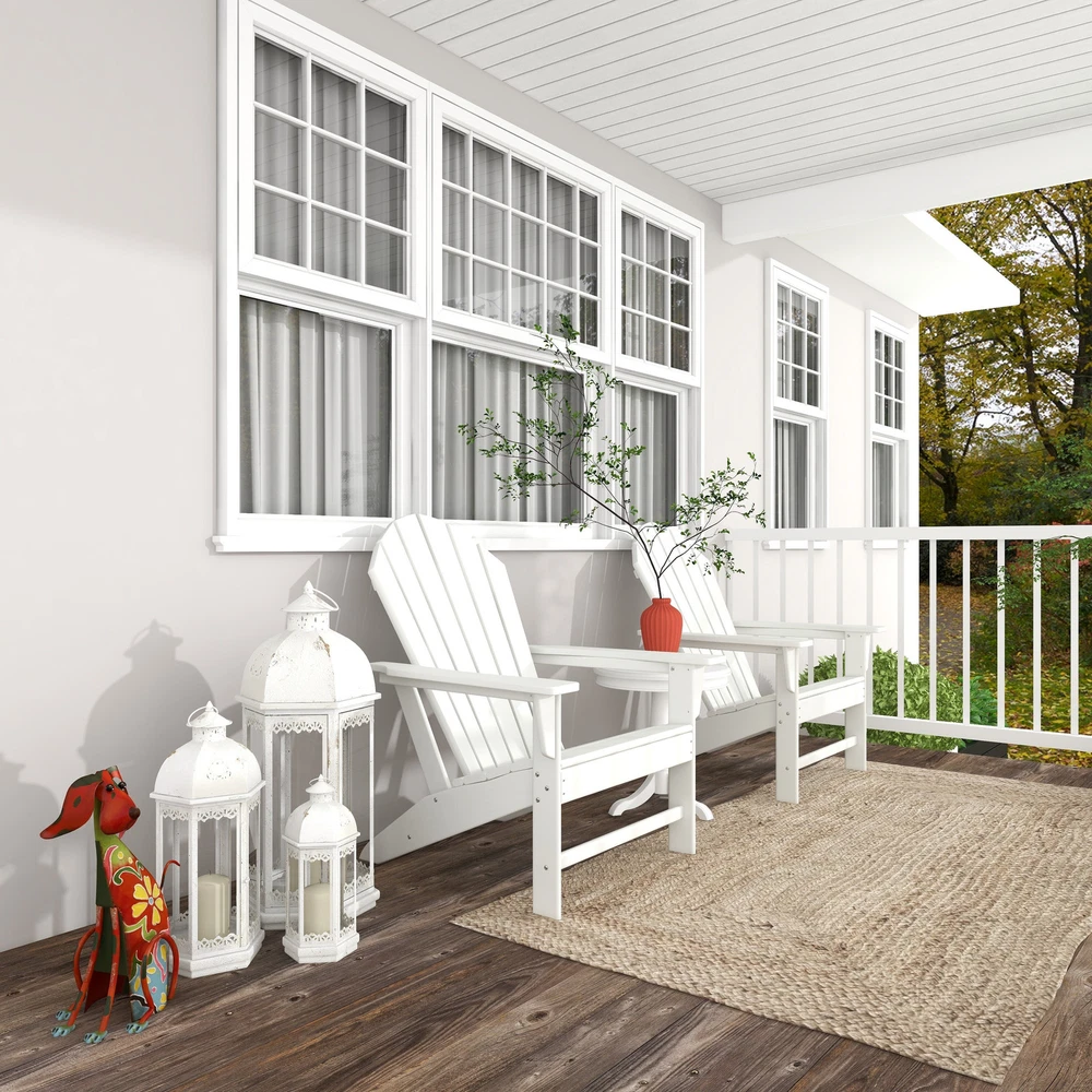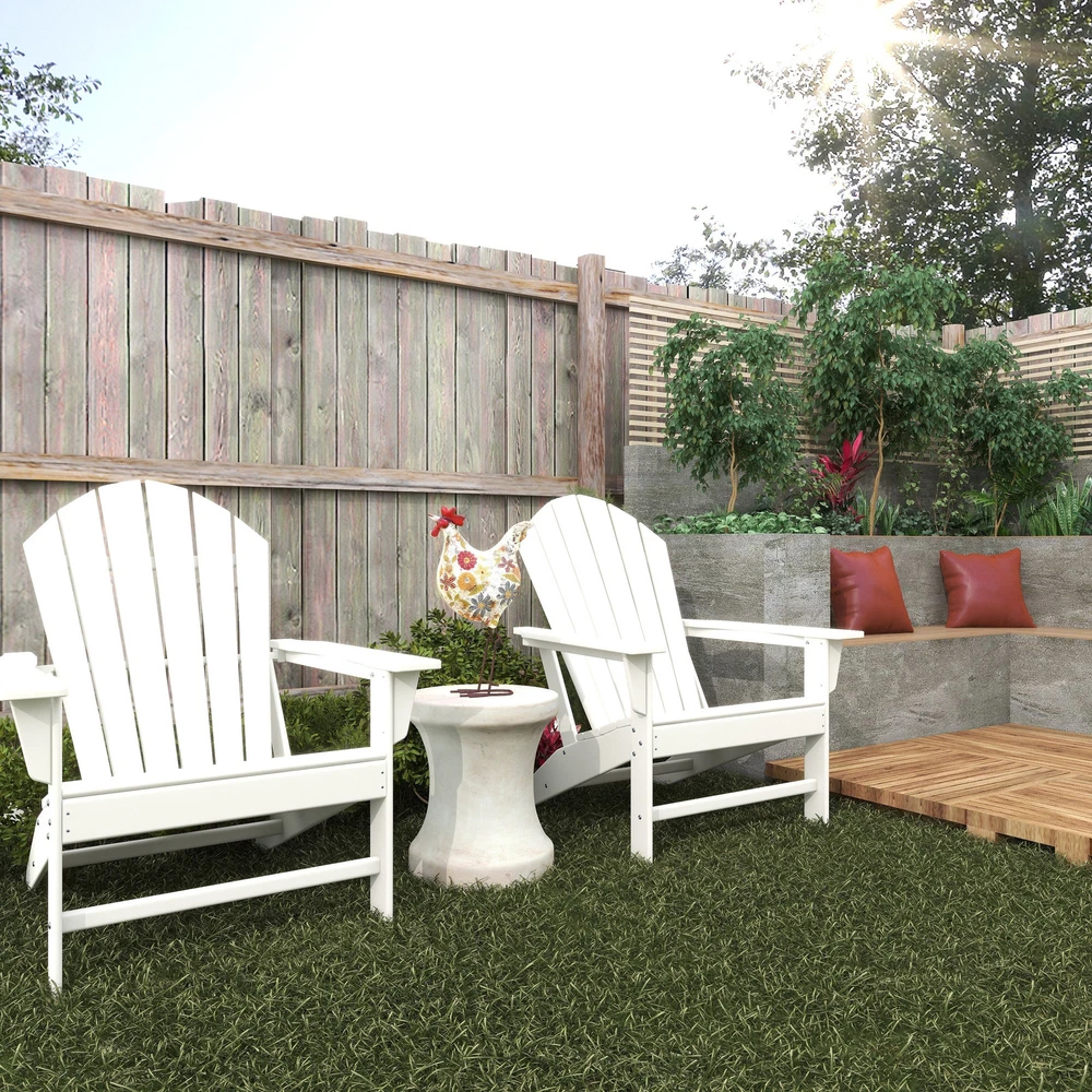 The perfect chair to lounge with comfortable thick slats to help keep your posture supported. White Adirondack chair that you can sink into with high back and arm rest that you can place near the pool or by your garden as you enjoy the outdoors. This item ships in 1 carton. This durable and weather resistance chair feature a low profile tilt seating with high slats for back support. This item also feature a high arm rest for your comfort and convenient.. Suitable for indoor and outdoor use. Some assembly required. Maximum weight limit is 250 lbs. Can accommodate 1 person. This is a single adirondack chair. Traditional style. Resin is resistant to weather and temperature fluctuations and is non-hydroscopic. It does not absorb water or moisture from the air.Designed with the essence of Free Shipping Over $49.99* Details Resin Traditional Outdoor Adirondack Chair Product Description: The perfect chair to lounge with comfortable thick slats to help keep your posture supported. White Adirondack chair that you can sink into with high back and arm rest that you can place near the pool or by your garden as you enjoy the outdoors. This item ships in 1 carton. This durable and weather resistance chair feature a low profile tilt seating with high slats for back support. This item also feature a high arm rest for your comfort and convenient.. Suitable for indoor and outdoor use. Some assembly required. Maximum weight limit is 250 lbs. Can accommodate 1 person. This is a single adirondack chair. Traditional style. Resin is resistant to weather and temperature fluctuations and is non-hydroscopic. It does not absorb water or moisture from the air. Designed with the essence of timeless sophistication, where rich old-world textures and warm hues come together for a refined classic taste of understated luxury Outdoor Adirondack chair is made from non-hydroscopic resin. It does not absorb water or moisture from the air and is resistant to cracks An outdoor Adirondack chair features in a clean and crisp white or blue or light brown or dark blue or teal or brown finish which will definitely draw attention in your front yard Adirondack chair features wide slatted seat and high back rest at a leaning angle that provides all day comfort with breathable structure This item measures 37.4L x 31.1W x 31.5H inches, and weighs 38 lbs or 31L x 32W x 38H inches, and weighs 38 lbs