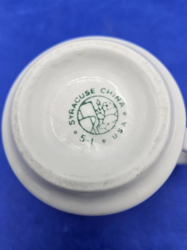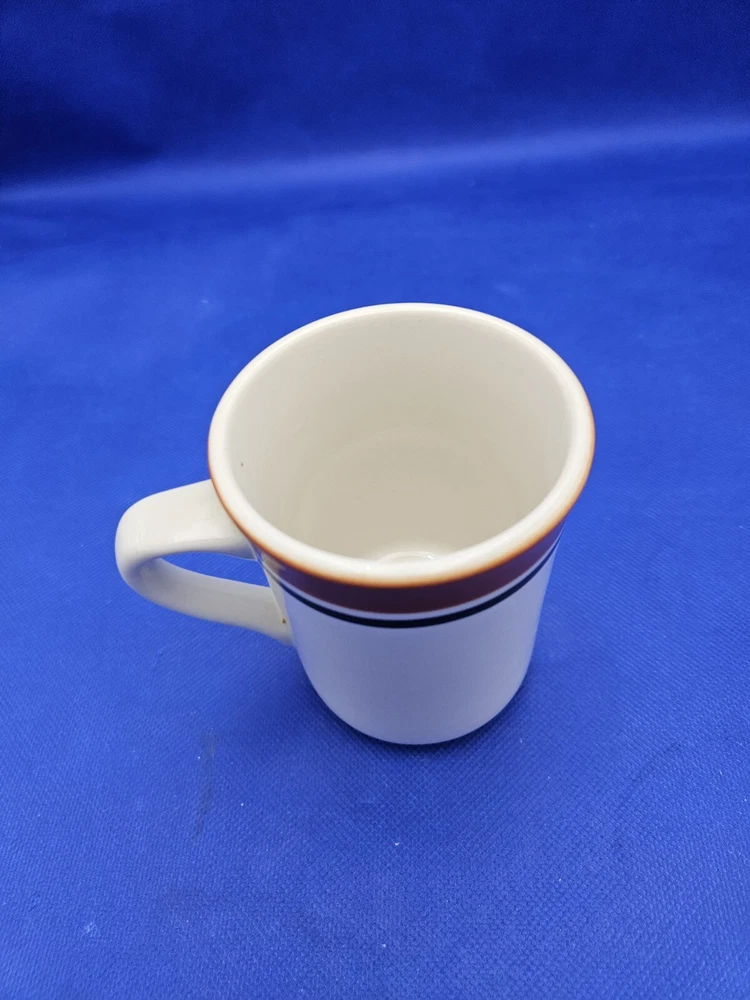 This vintage Syracuse mug Restaurant Ware features a beautiful ivory and brown design with a printed backstamp. The ceramic mug was made in the United States and is in excellent condition. It would make a great addition to any collection or a perfect gift for a vintage enthusiast. Shipping to continental US only
