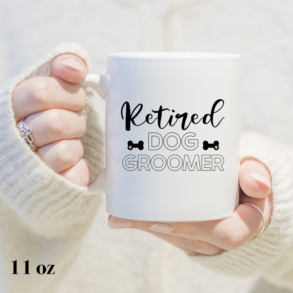Retired Dog Groomer Mug Dog Stylist Mug Pet Groomer Retirement Gift Dog Care Mug Product Details.. This high quality 11oz. ceramic white mug has a premium hard coat that provides crisp and vibrant color reproduction sure to last for years. Perfect for all hot & cold beverages. The highest quality printing possible is used. It will never fade no matter how many times you wash it. Material: 100% Ceramic. Print both sides. Dishwasher and Microwave Safe. High Gloss + Premium White Finish. Printed in the U.S.A. Personalized & Custom. We support personalized and custom mug to add custom, when placing an order, you can add notes to the "order note" in shipping address section. Also you can contact us directly via message. Shipping Info. Ready to ship in 1 to 2 business days, All products are made-to-order and proudly printed in the United States. Shipped by USPS and DHL, You will receive your order in 5-7 days. Replace & Refund. All products are defective during shipping broken, chipped will be replaced free of charge. You are not satisfied with the product, we will refund 100% money to you. If any other issues arise, please do not hesitate to message, we would be more than happy to assist you.