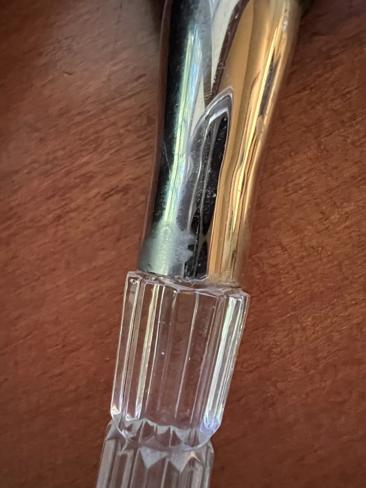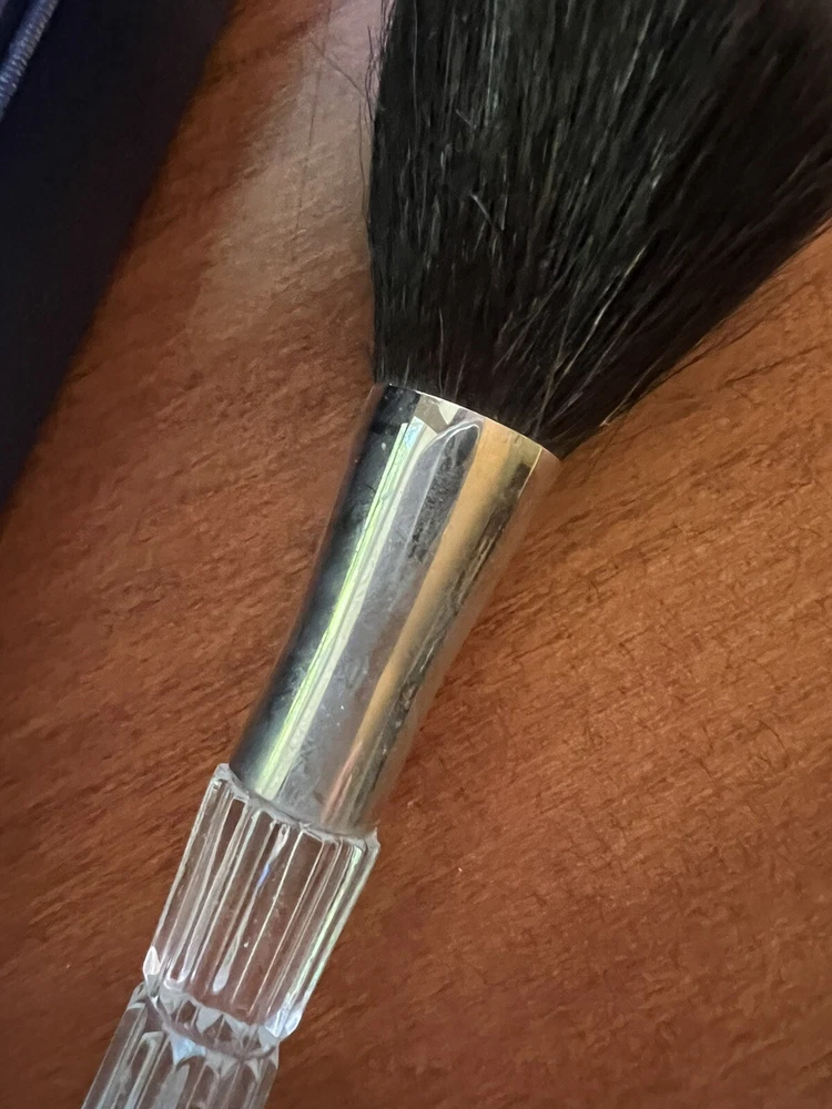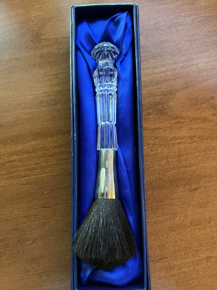 Retired Lismore Waterford crystal makeup brush with original box. Silver handle area has some discoloration but overall a beautiful example of Waterford. Made in the 1990's Ireland.