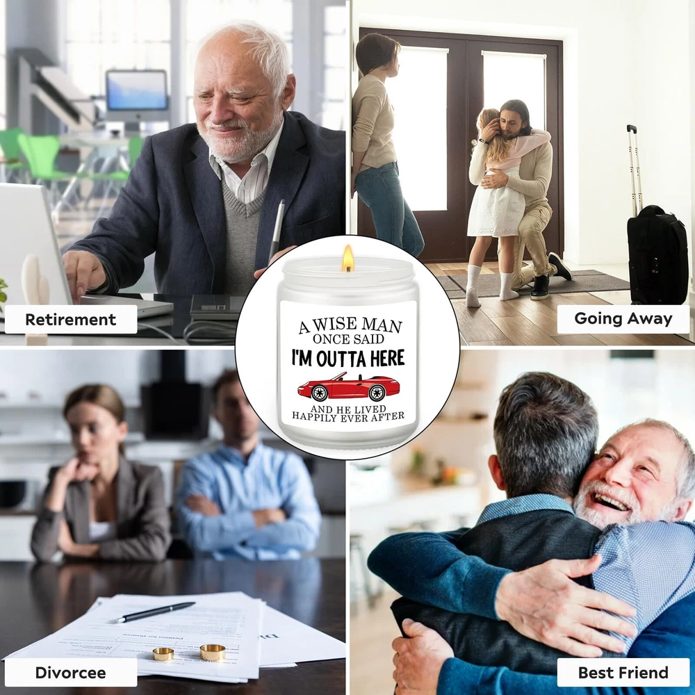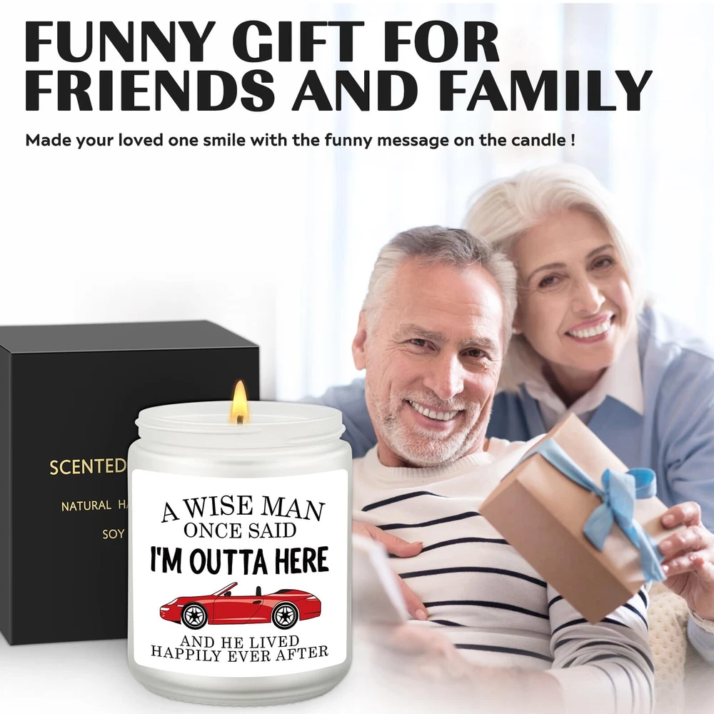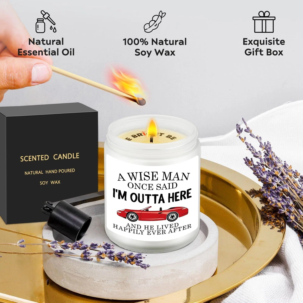 Elegantly packaged, Funny Gifts for Coworker Friend, Brother: candles arrive beautifully in a matte white and black-lid gift box with a hilarious message, "A WISE MAN ONCE SAID I'M OUTTA HERE AND HE LIVED HAPPILY EVER AFTER". candles are a fun way of showing love to him or her! It is a great going away gift for your old friend, Bff, or coworker. Distinct and thoughtfully crafted candles for him or her: These candles are specifically crafted to be the best gift for special occasion! Not only does it have a fun label design, this candle is also designed to last up to 50 hours, making it the best choice for your coworker friend's retirement gift. Smells Great and Lasts a Long Time: Our 9 oz scented candle is made from 100% natural soy wax, it's eco-friendly, renewable, sustainable, natural & safe, and it burns longer & cleaner. This is also a great addition to the living room, bedroom, bathroom, home office, or any part of the home. Perfect Gift Idea for Many occasions: Retirement, farewell, goodbye, going away, birthday gifts, house decor gifts, apartment essentials gifts, Mother's Day, Apology, Visit, Christmas, Leaving, Graduation, New Year, Holidays, Anniversaries, Easter, Valentine's Day, Father's Day, Halloween, and Thanksgiving, etc. Gift Ready & Funny: Get lit and get LOLing with one of these funny jar candles. They're as scintillatingly scented as they are hilariously message and are guaranteed to bring some hand-poured hahas to your coworker friend. It is the best gift that is unique and memorable.