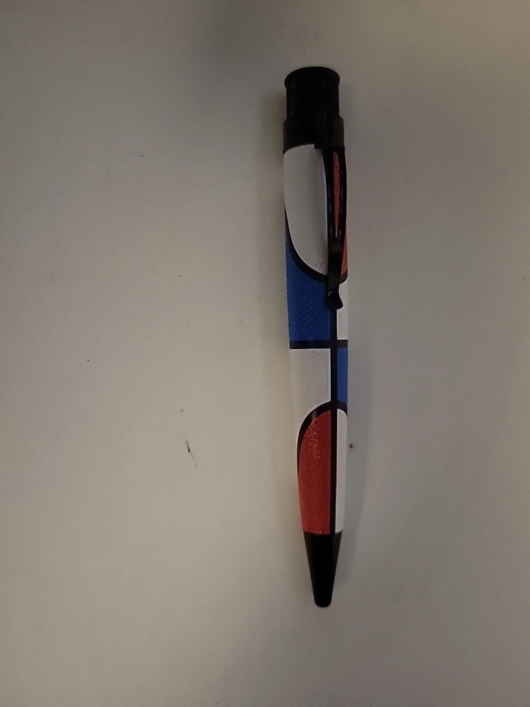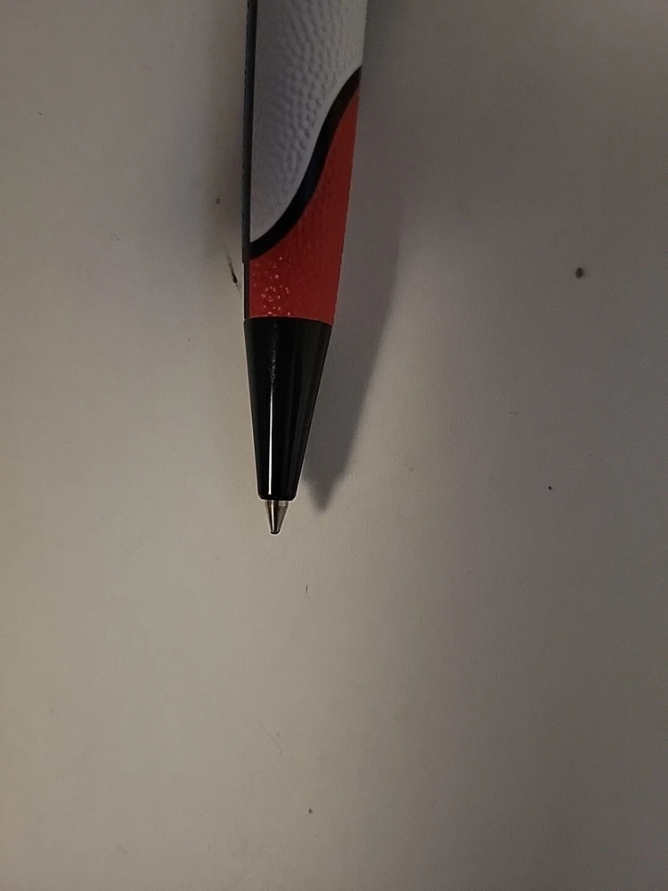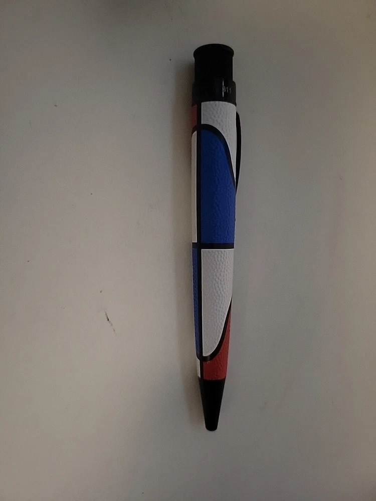 number 756. From a collectors inventory, sealed in tube. Pictures are of a similar item. If you're a hoops fan then this Big Shot is your first pick. You're writing with an MVP (Most Valuable Pen) in the "Swish All-Star." The amply sized body of the pen is acid-etched to emulate the texture of a basketball. Red, white, and blue lacquer is hand applied and complemented with glossy black trims. Each pen is numbered at the top ring and comes in a matching tube.