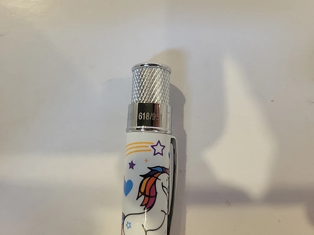 From a collectors inventory. Opened for display. No marks or blemishes. Number 618 of 951. You are bidding on the item shown. Colorful, glow-in-the-dark pen features unicorns, rainbows, hearts, and stars