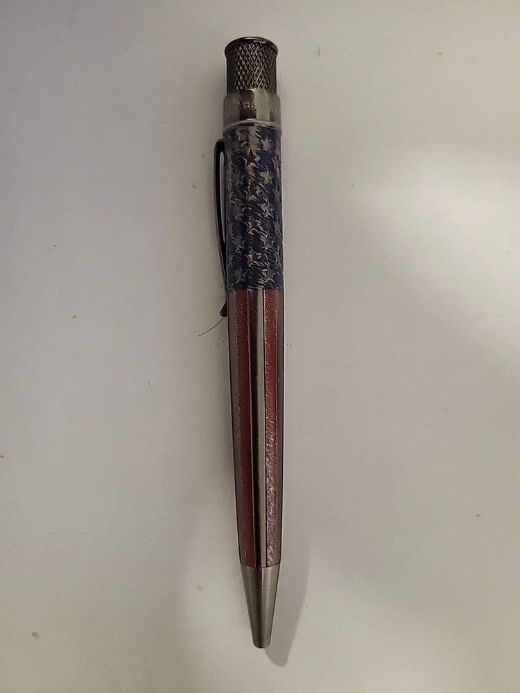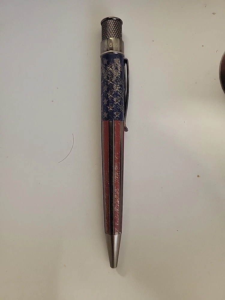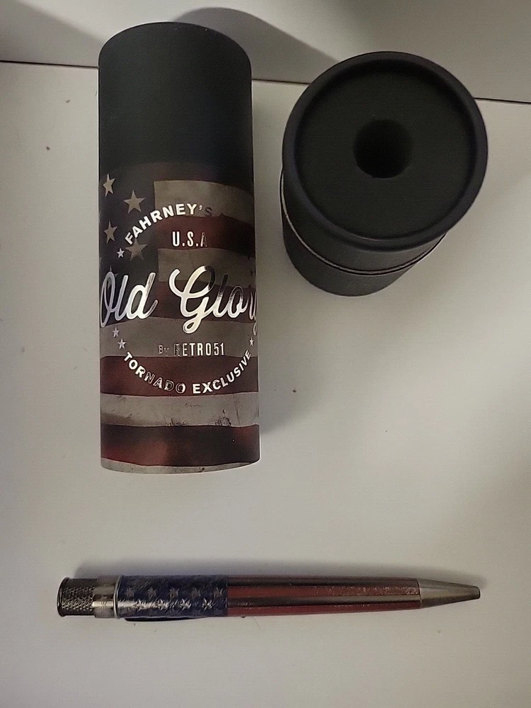 Pictures are of similar item. Pictures of sealed tube are of item for sale Limited Edition, number 552 of 600. Retro 51 Tornado OLD GLORY Rollerball / Pen - Ltd Ed of 600 Old Glory is the nickname for the U. S. flag that was first flown in 1824 by Captain William Driver and later adopted by the Union Army. It has been revised multiple times and eventually evolved into the 50-star version that flies today. The Retro 51 Tornado Old Glory Rollerball / Pen has acid-etched stars and stripes, screen printed colors, and antique silver trim. Each Old Glory Rollerball / Pen is given a hand-brushed-stressed design to make it look antique. Every pen is unique as a result of the brushed off look. Limited Edition of 600 individually numbered pieces