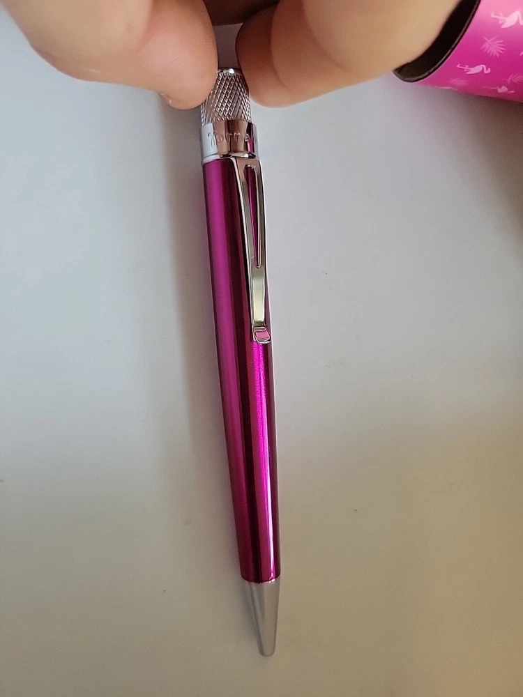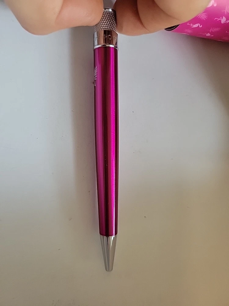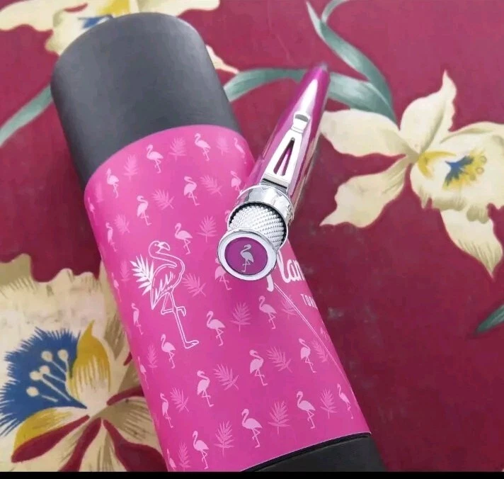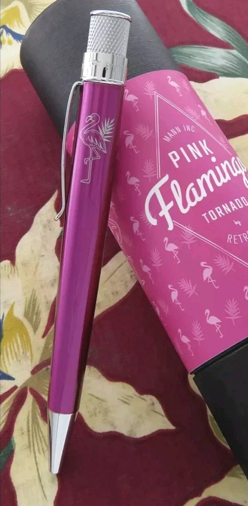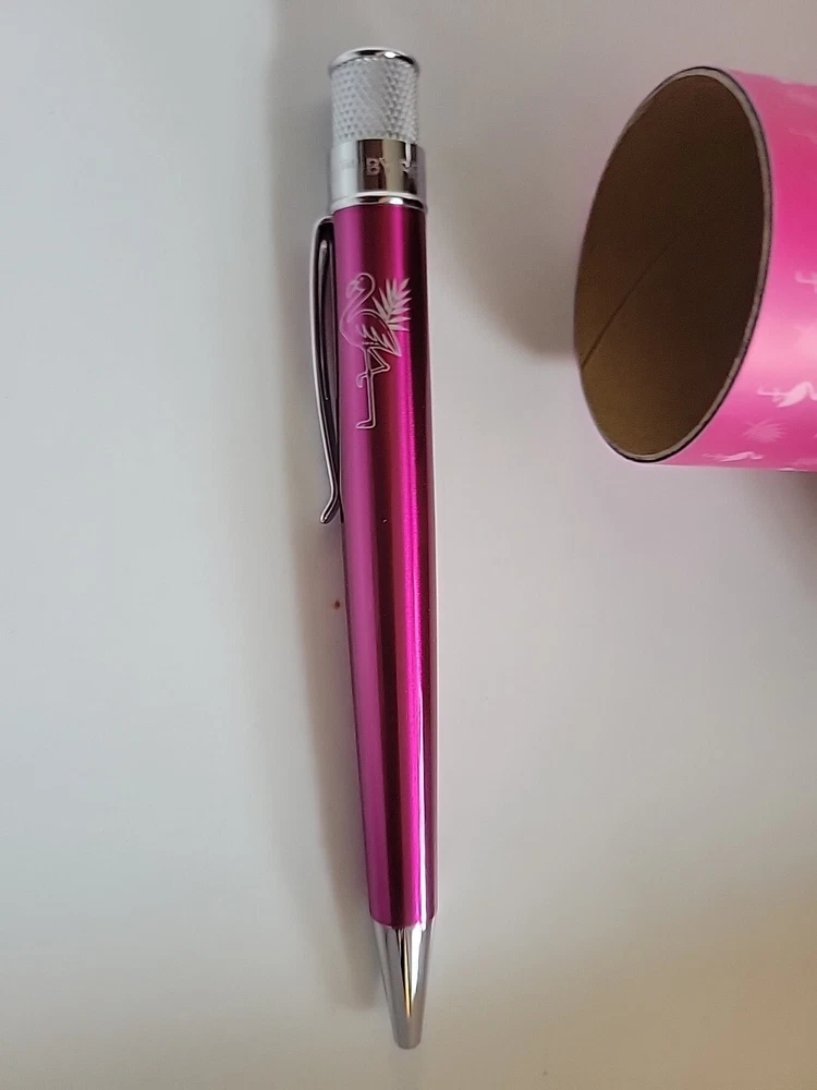 From a collectors inventory. No marks or blemishes. Reunited with original tube. Pictures include those of actual item. Please review to confirm condition. Retro 51 Tornado PINK FLAMINGO - Rollerball / Pen New Opem Tube Retro 51 Tornado PINK FLAMINGO - Rollerball / Pen NOTE - Somehow top tube disc got pushed down - so I opened tube to make sure all is good. No damage. Pushed disc back up. Beautiful and rare pen. Trim: Chrome Knurled twist-top Pink Flamingo on top and barrel Refill: Easy-Flow 9000 Ballpoint Refill REF77 & REF71 Top Disc: Pink Flamingo Pen Length: 5 in. / 125mm Pen Barrel Diameter: 0.45 in. / 12mm Pen Weight: 1 oz / 28g Matching graphic tube packaging.