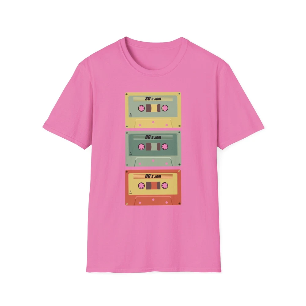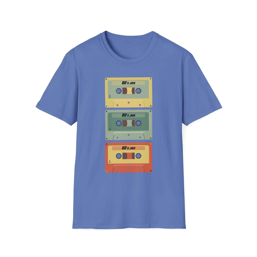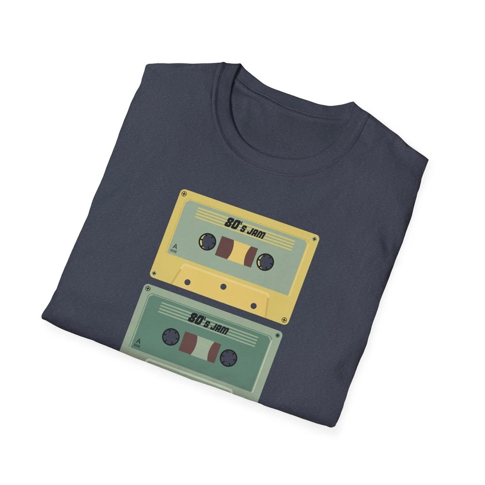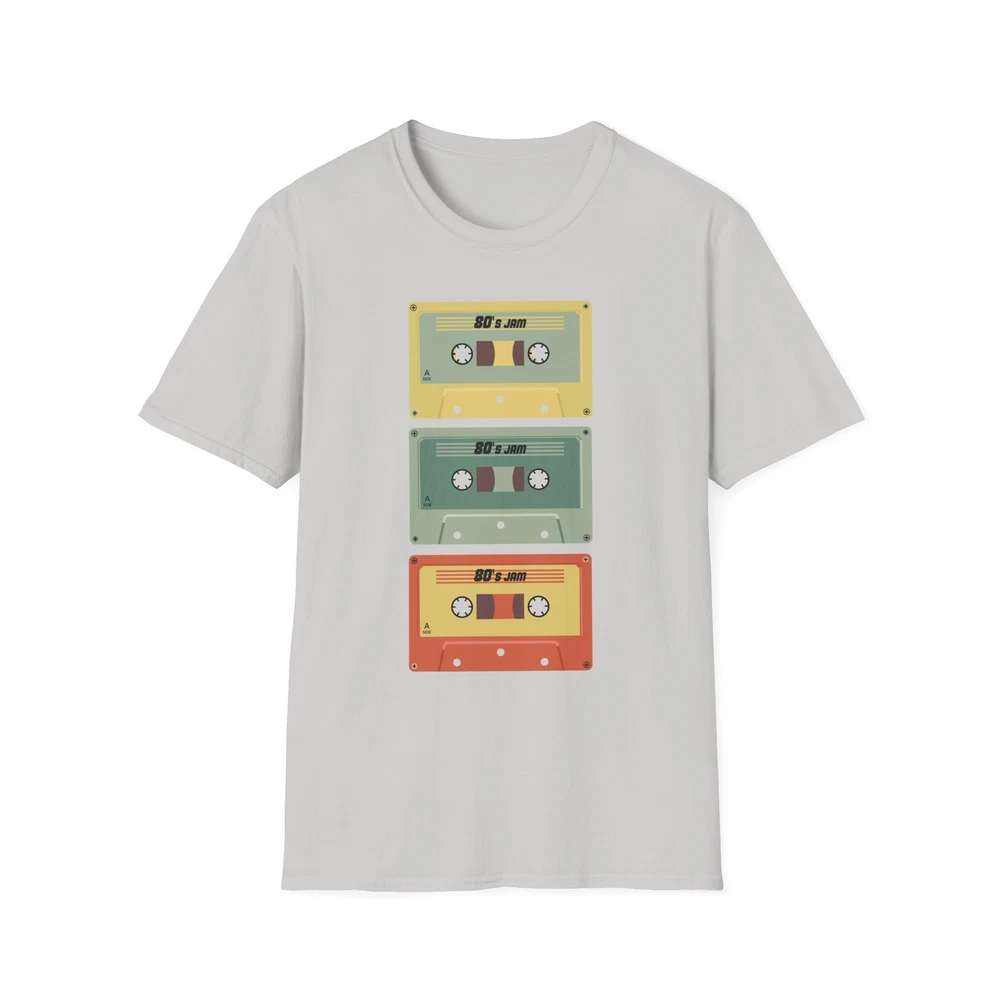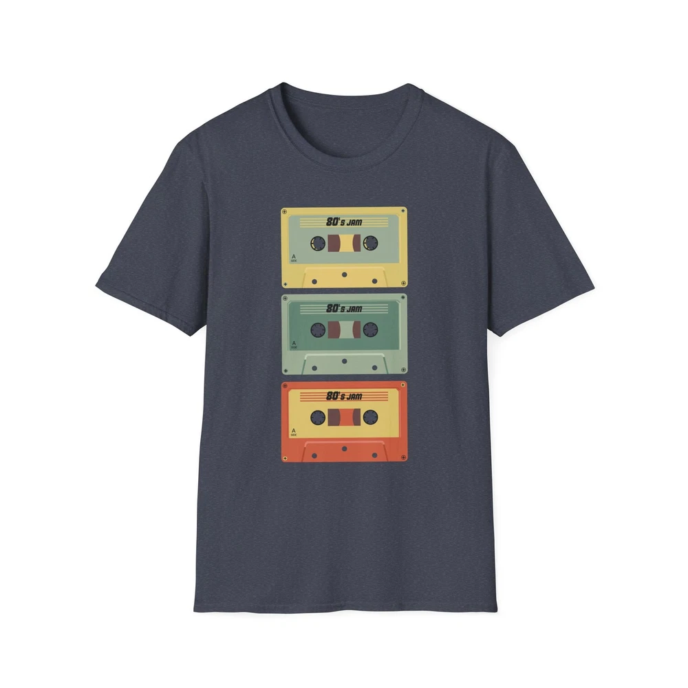 A soft, vintage-feel tee that wears like a favorite mixtape. The lightweight cotton sits cool on the skin while a stacked trio of retro cassette tapes adds a pop of muted color and nostalgia. It slips on easily for record-store afternoons, city bike rides, or lazy Sundays with old playlists — the kind of shirt that looks lived-in from the first wear and keeps giving. The crew neckline and classic fit keep the silhouette clean so the artwork does the talking. Printed with durable methods that retain color and detail wash after wash. Product features - Lightweight 100% ring-spun cotton for a soft, breathable feel - Classic crew neckline and relaxed fit for everyday wear - Durable, print-friendly fabric that holds color well - Tear-away pearlized label and shoulder tape for comfortable, stable fit - No side seams (tubular knit) for a smooth, clean look Care instructions - Do not dryclean - Do not bleach - Tumble dry: low heat - Iron, steam or dry: low heat - Machine wash: cold (max 30C or 90F), with similar colors