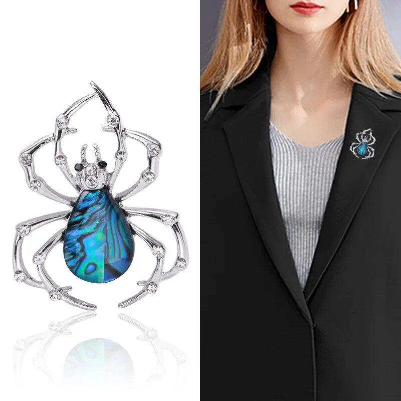 Retro Creative Abalone Shell Spider Brooch Fashion Men Collar Pin Brooch Jewelry