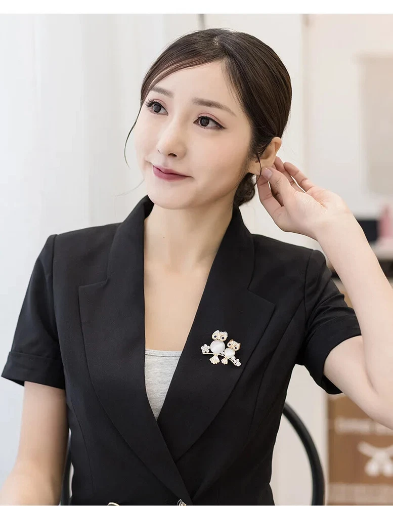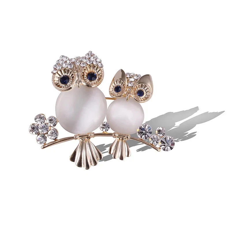 Retro Creative Simple Owl Brooch Fashion Men Collar Pin Pearl Rhinestone Brooch