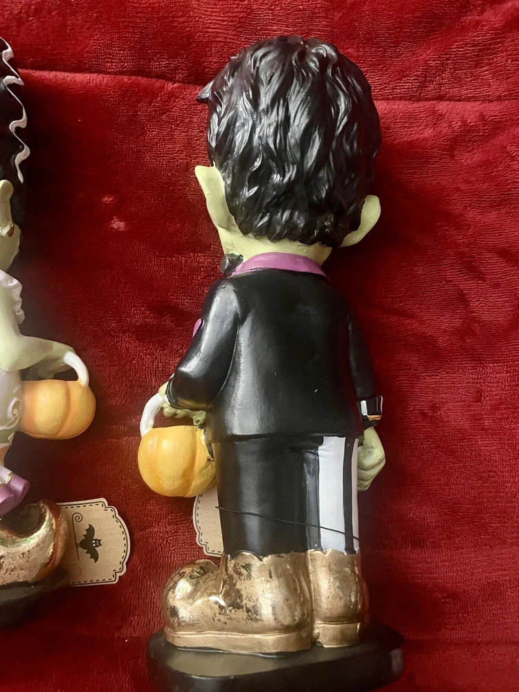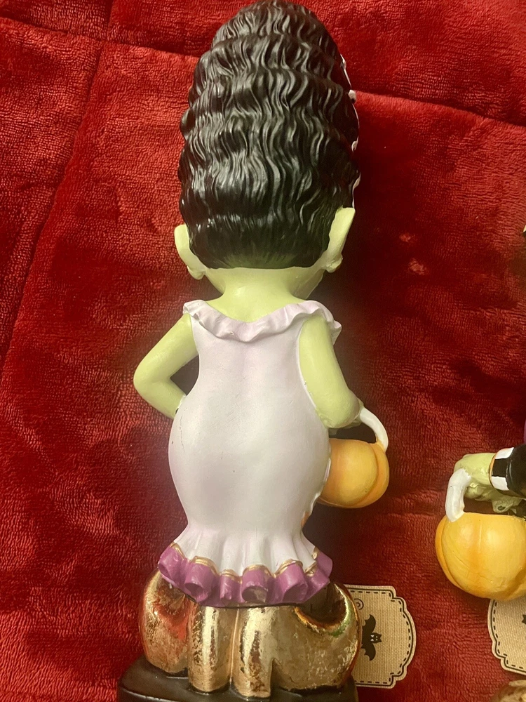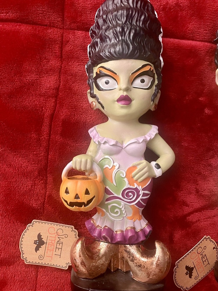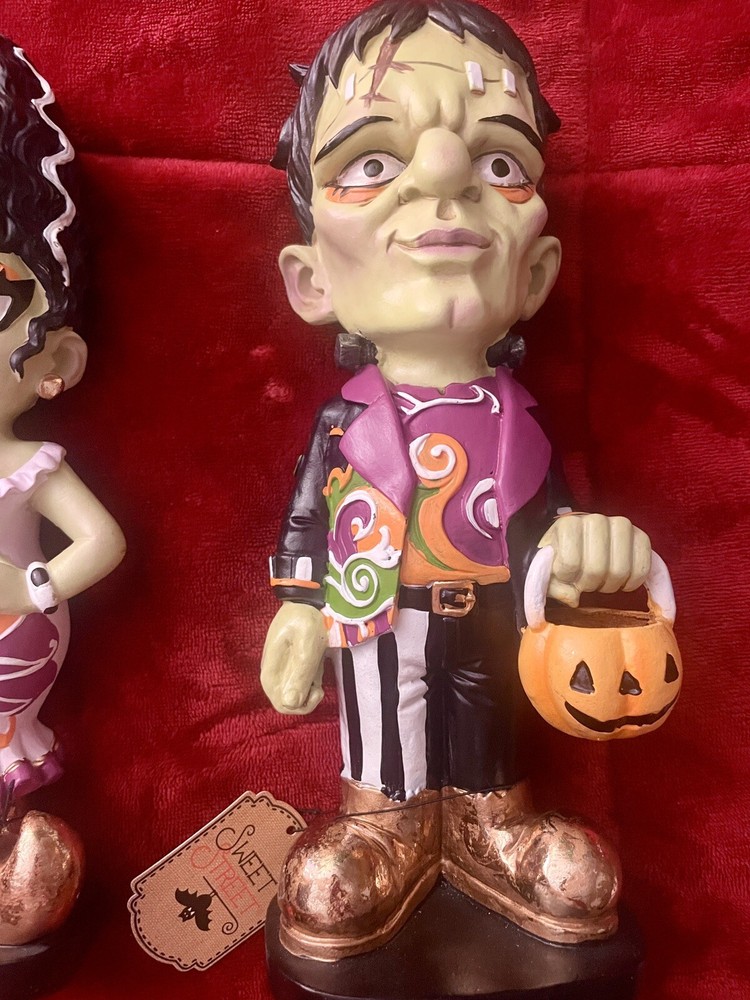The Sweet Street Retro Style Frankenstein & Bride Halloween Figurine Set 2024 is a medium-sized, multicolored resin figurine set depicting the iconic characters Frankenstein and his Bride in a 1960's psychedelic style. Standing at 13 inches tall and 12 inches long, this figurine set is a unique and eye-catching addition to any room, perfect for Halloween or fans of classic monsters. With a matte finish and a theme that includes elements of film & TV, this set is sure to be a conversation starter and a fun decorative piece for adults, teens, and even children.