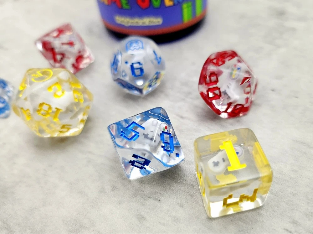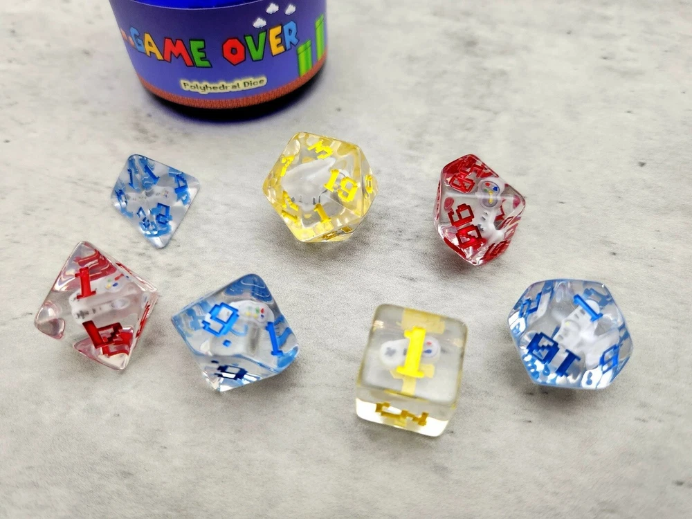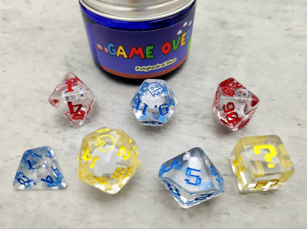 ⛔️NOT EDIBLE⛔️ WARNING:Please do not eat as it may cause choking hazards Cast your magic bell and haze the monsters! The seven-dice set is made with resin material, meaning a soft and smooth touch and high durability, as it won't do any damage to the surface you play on. They are stored in a cute round glass container that provides protection and organization. (2 in width 2 in height) Dice Dimensions (the widest side): D4 - 13/16" (21mm) D6 - 5/8" (16mm) D8 - 13/16" (21mm) D10 - 7/8" (22mm) D% - 7/8" (22mm) D12 - 13/16" (21mm) D20 - 15/16" (24mm) ⛔️NOT EDIBLE⛔️ WARNING:Please do not eat as it may cause choking hazards.