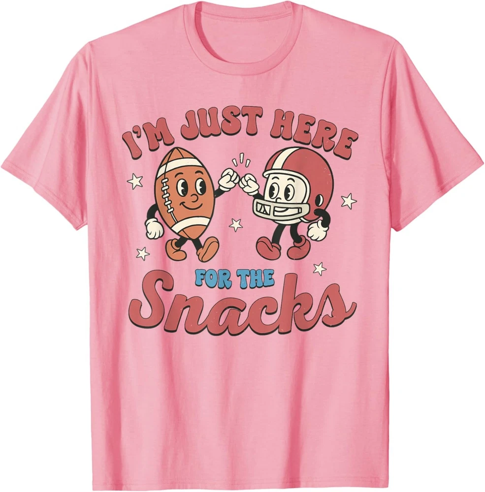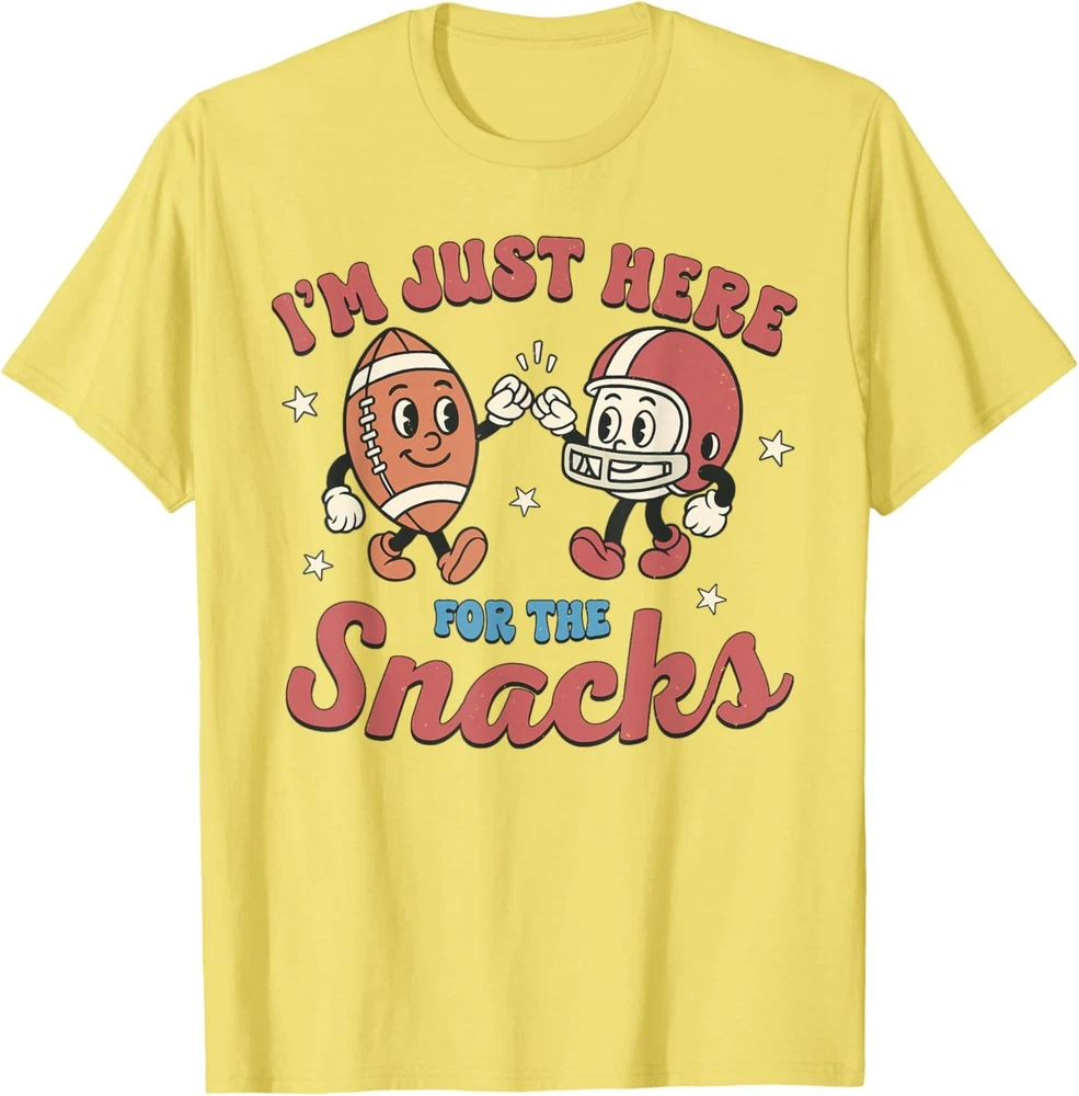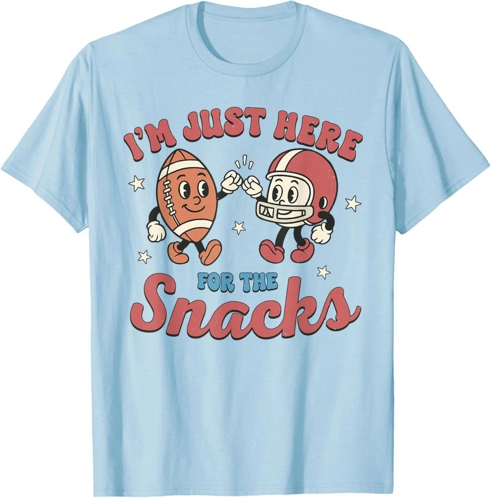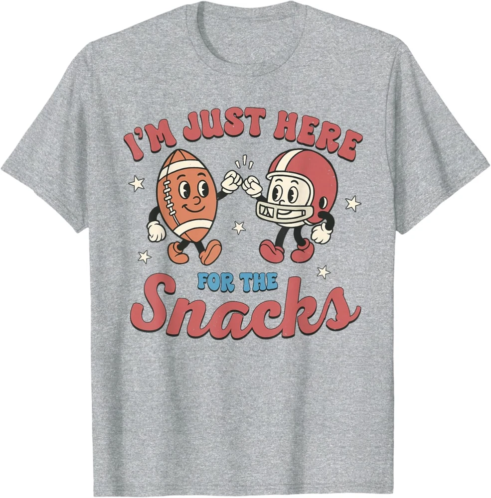 Retro I'm Just Here for The Snacks Cute Football Women Kids T-Shirt Designed and Printed in USA Product Features: • Classic Look and Feel: This ultra cotton tee offer the timeless appeal of traditional cotton. The high-quality print enhances its casual appearance. • Material: Made from 6.1-ounce, 100% cotton. (Note: Dark Heather variant is 50% cotton, 50% polyester.) • Durability: Features double-needle stitching on the neck, sleeves, and hem for added durability. Designed for a roomy, unisex fit. • Print Type: DTG (Direct to Garment) • Manufacturer: Gildan 5000, 5000b (Made in USA) Shipping Information: • Handling Time: With POD(Print-On-Demand) product model, we typically require about 3 business-days handling time before shipping. In most cases, our handling time’s , rang e from 1-2 business days. • Delivery Time: • USA: Approximately 2 -6 business days • Canada: Approximately 6-10 business days (We currently don’t offer international Shipping) • Worldwide: Approximately 15-25 business days (We Currently don’t offer international Shipping) • Shipping Carriers: USPS and DHL • Note: Business days exclude weekends and holidays. Return & Exchange Policy: • Quality Guarantee: We stand behind the quality of our products and workmanship . Any defects or errors on our part must result in a refund/ replacement at no charge. • Conditions for Returns: Returns are generally not accepted for user errors such as incorrect selection of sizes, designs, or colors. Returns /Replacements are acceptable for damages such as poor printing results, incorrect size or design caused by us. • Note: Please reach out to us if there are any questions or issue s with your item, we’ll do our best to resolve any issue you might have. Note: • We’re glad to have your support! If you have a moment, y our honest feedback is very valuable to us. Thank you!